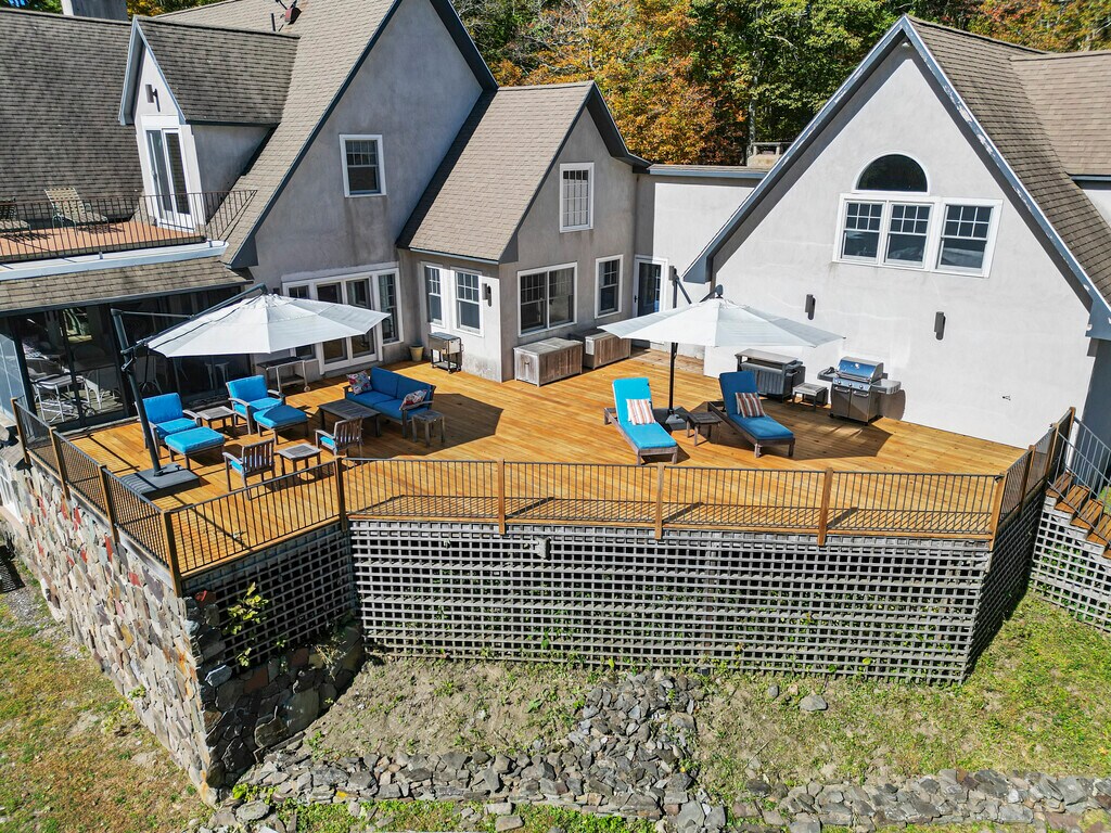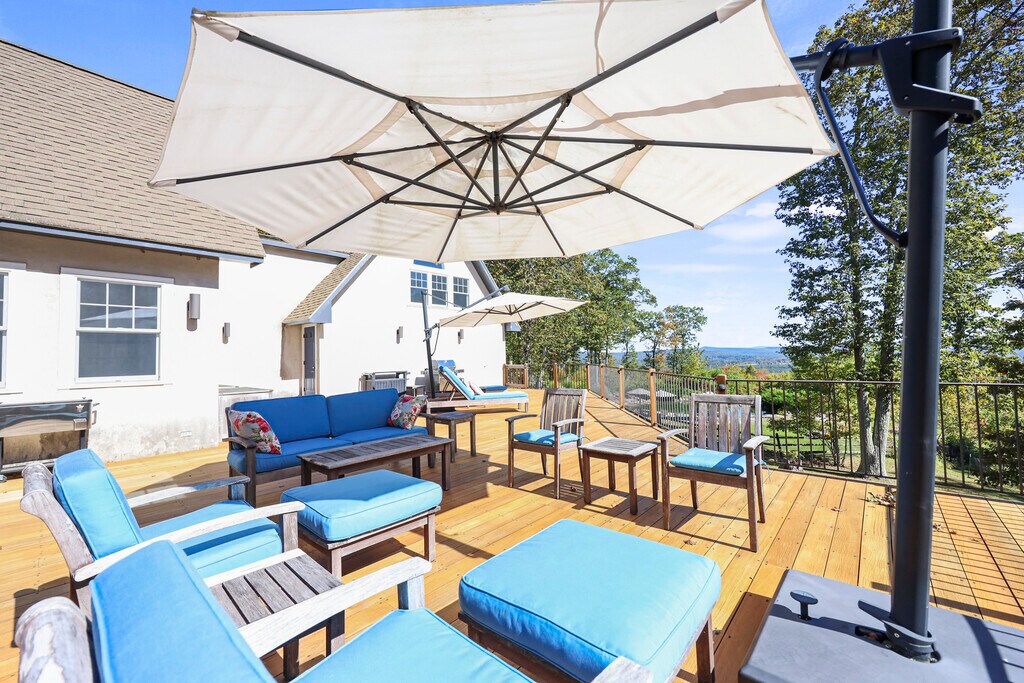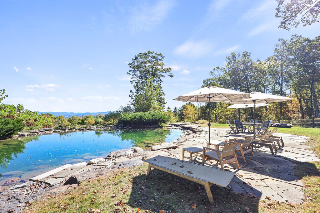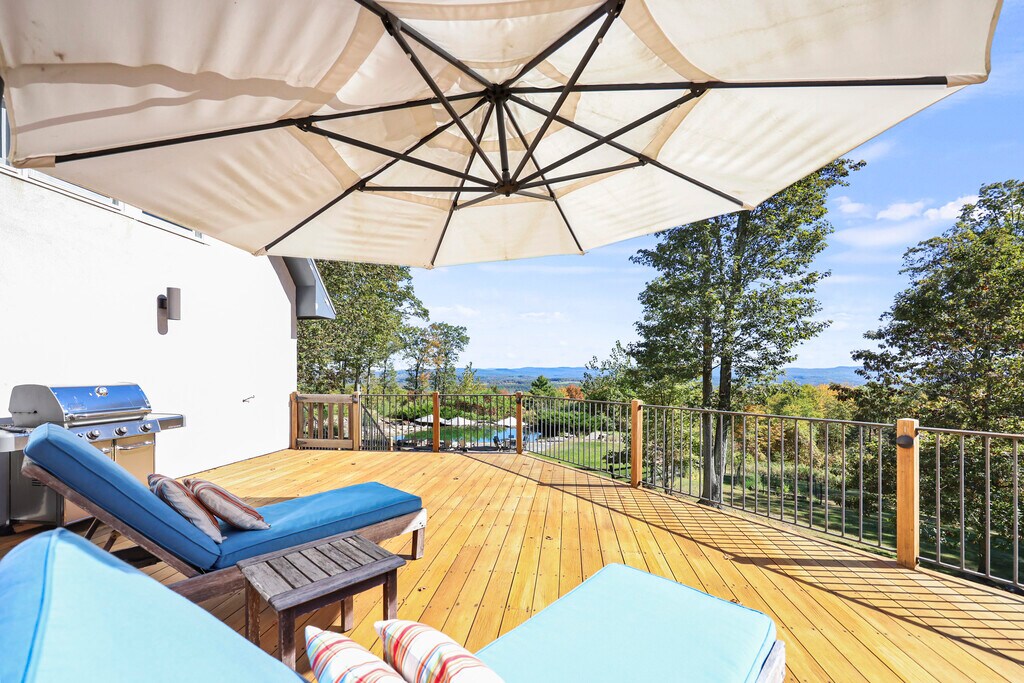 The perfect Berkshire country retreat for large gatherings awaits you. Bring your family and friends to enjoy this stunning home and property on 18+ acres perched atop the Berkshire hills with panoramic views. This generous and tasteful home o?ers endless spaces to relax and entertain. Lounge on the expansive deck with gorgeous views all around.Take a swim in your own pond overlooking the valley below. Enjoy lunch in the screened porch, or catch up on your reading in the sun room. Warm up near the fire place in the extraordinary great room. Prepare feasts of your choice in the enormous well stocked kitchen. And when it's time to retire for the evening, everyone will have a place to stay as this gracious home sleeps 12 comfortably. When you feel like venturing beyond this won private oasis, Great Barrington is just minutes away along with all of the best of the Berkshires.
