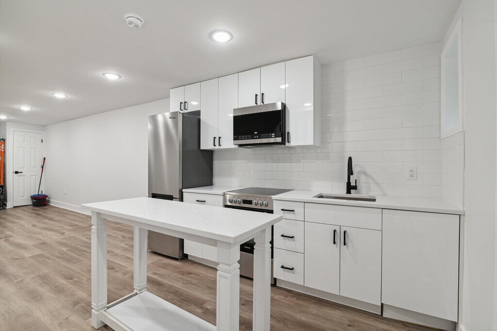 Welcome home to this newly renovated, spacious studio apartment nestled on the ground floor of a charming brick row home in the peaceful Bergen Hill neighborhood of Jersey City. Offering the perfect blend of modern convenience and classic charm, this studio apartment is the epitome of urban living at its finest. Step inside to discover a bright and airy interior, the open layout seamlessly integrates the living, dining, and sleeping areas, providing ample space to relax and unwind. The kitchen boasts sleek stainless steel appliances, including a microwave, refrigerator, and an induction range for efficient cooking. The cabinet front dishwasher adds a touch of elegance to the space, while the in-unit washer/dryer ensures laundry day is a breeze. Stay comfortable year-round with central air and heat, while recessed lighting throughout adds a modern touch to the ambiance. Located on a quiet tree-lined street, this apartment offers a tranquil retreat from the hustle and bustle of city life. Enjoy easy access to outdoor recreation with Liberty State Park, Lincoln Park, and Berry Lane Park just a stone's throw away. When it's time to dine out or grab a cup of coffee, you'll find an array of options nearby, including Cafe Alyce, ITA Italian Kitchen, Krew, Snapdragon Coffee shop, and the ALL NEW TINY TOPIARY! Don't miss out on the opportunity to experience the best of urban living in this coveted Jersey City neighborhood. Schedule a viewing today and get ready to fall in love with your new home sweet home.