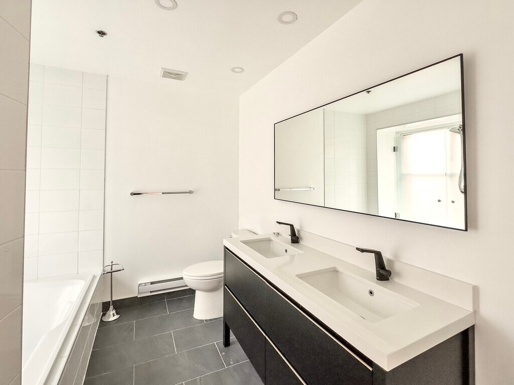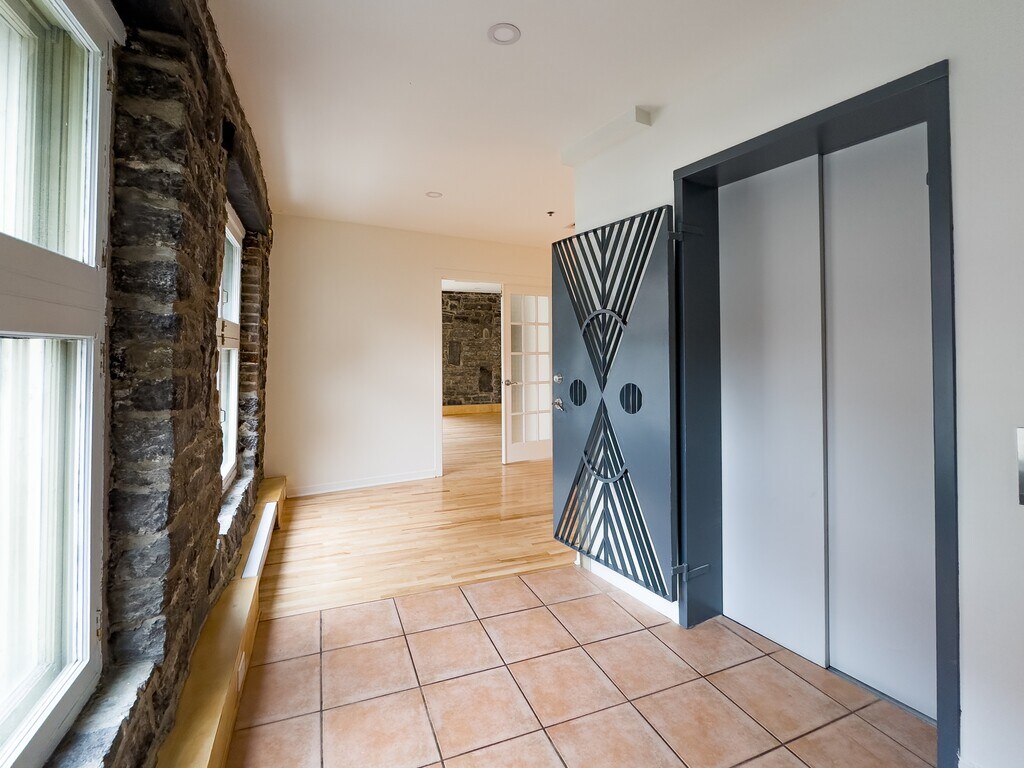 Stunning one of a kind full floor 2100 sq.ft. loft-style apartment in Old Montreal. Large open areas, wraparound windows with fabulous views of the Saint Lawrence River, exclusive elevator entrance. 3 bedrooms, 2 bathrooms, brand new open concept kitchen, original stone walls and wooden floors. Fridge, stove, dishwasher, washer/dryer and AC are included.