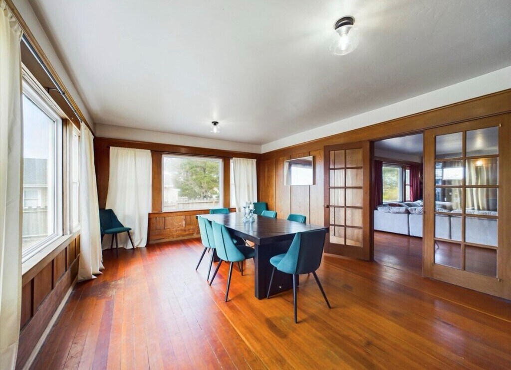 This beautifully restored Craftsman home, originally built in 1923, perfectly blends historical charm with modern convenience. Situated on a scenic 0.3-acre lot, this 6-bedroom, 3-bathroom property offers stunning ocean and bay views and direct access to coastal beauty. The home retains much of its original character, showcasing rich redwood paneling and timeless hardwood floors that create a warm, inviting ambiance throughout. A newly renovated kitchen with brand-new appliances complements the home’s classic charm, providing a sleek, functional space for cooking and entertaining. The property also boasts a spacious storage and ample parking, making it ideal for families or groups. With its combination of unique history, gorgeous natural surroundings, and modern upgrades, this home offers a rare rental opportunity.