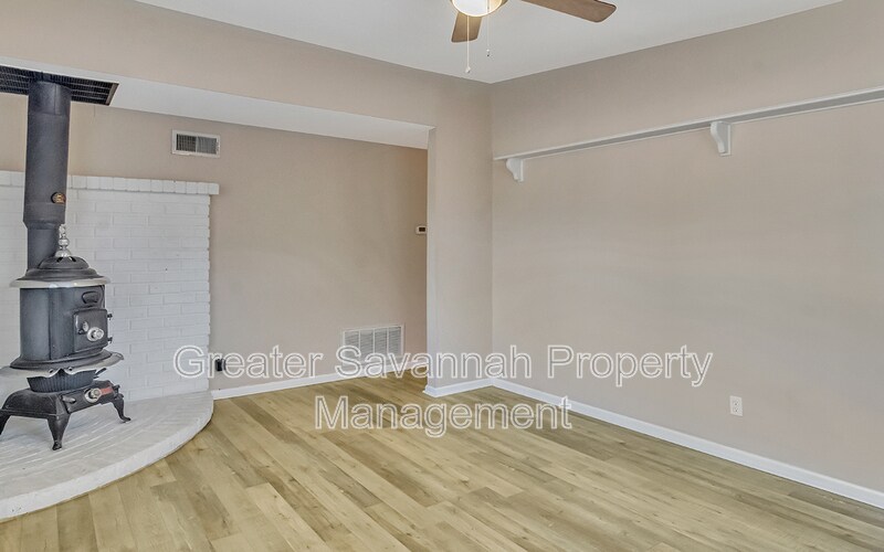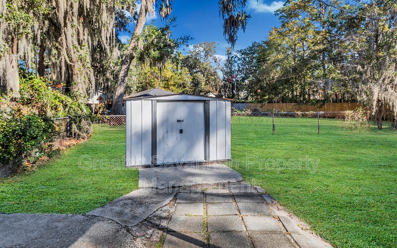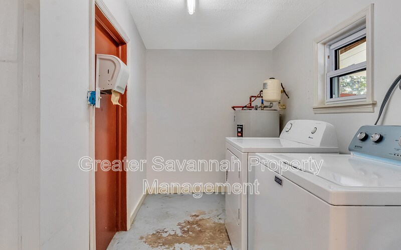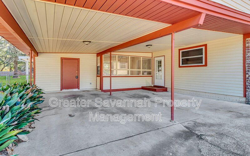 3-bedroom, 1-bath ranch style home offers comfortable living on a spacious half-acre lot. A covered two-car carport welcomes you home. Step inside through the tiled dining and kitchen area featuring ample cabinet space, stainless steel appliances, and a gas stove. A second entry leads through the mudroom, where the washer and dryer are conveniently included. Enjoy a large living room centered around a free-standing wood-burning fireplace—perfect for cozy evenings. All three bedrooms are located along the back of the home and share a well-appointed bathroom. A bright sunroom or office space opens to the oversized, fenced backyard, complete with a storage shed. (Please note: the expanded patio no longer has the awning shown in previous photos.) This property offers space, comfort, and privacy—waiting for you! Conveniently located in Savannah with a short drive to the historic district, Tybee Island or all of the shopping, dining and entertainment you desire! Pets welcome-limit of 2. Landscape & pest control included.
