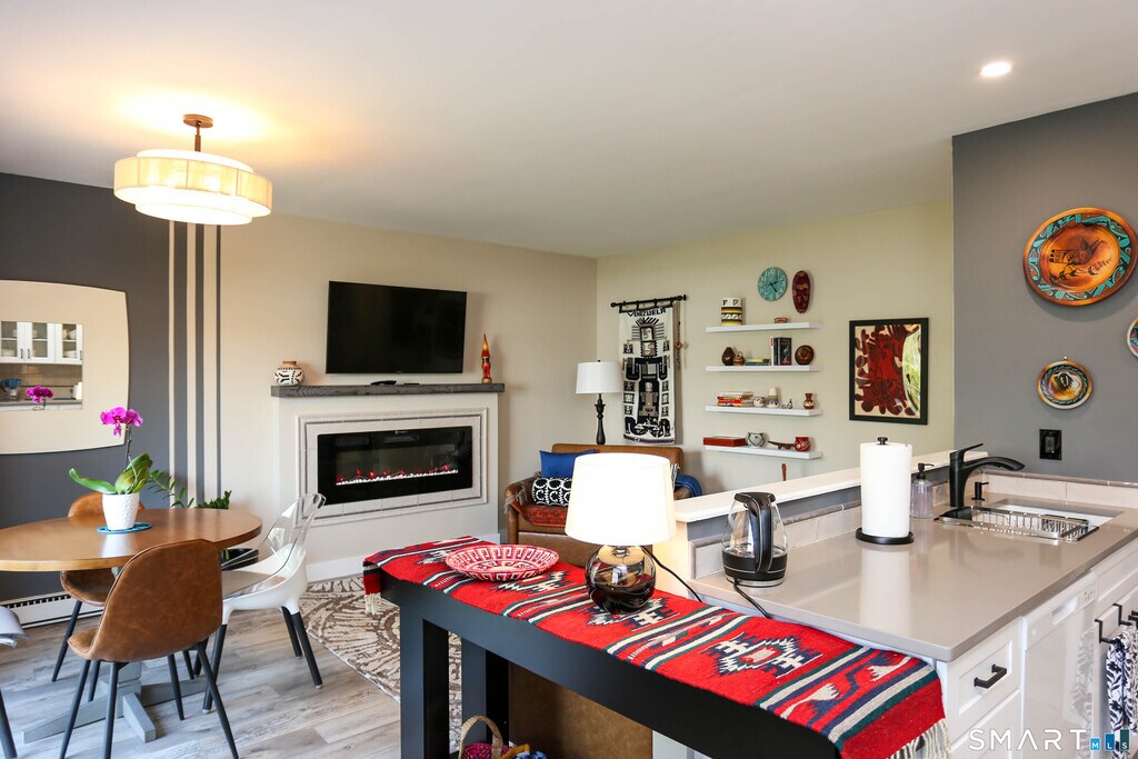 Call for Availability - Absolutely beautiful, fully updated, and furnished apartment. This sunny and spacious one-bedroom has it all! Located on the second floor of a two-story building in the desirable Turn of River neighborhood. The open kitchen features white cabinetry, quartz countertops, and a dishwasher. The living room/dining room combination is perfect for easy entertainment and includes a balcony and a built-in fireplace. The generously sized bedroom offers ample closet space. The bathroom has a window, additional storage, and a walk-in shower. Washer and dryer are conveniently located in the unit. Flexible terms available. Don't miss this opportunity! MLS# 24149282