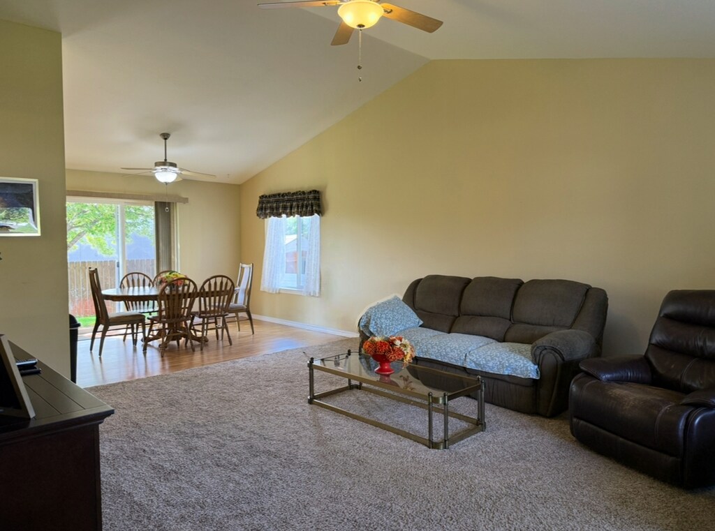 Welcome to this Kalispell Family Home, a charming ranch-style residence nestled in the heart of West Kalispell, MT. This home boasts three spacious bedrooms, two full bathrooms, and an open floor plan that invites warmth and comfort. The primary bedroom features a walk-in closet, providing ample storage space. The home's vaulted ceilings add a touch of elegance and grandeur to the living space. The kitchen is equipped with updated stainless steel appliances, ready for your culinary adventures. The large, fenced backyard offers a private outdoor space for relaxation or entertaining. The property is pet-friendly, welcoming your furry friends to enjoy the spacious yard. The home also features a heated three-car garage, providing ample space for vehicles or additional storage. Washer and dryer hookups are available for your convenience. This home is located in a family friendly neighborhood, offering a sense of community and belonging. The Kalispell Family Home is a perfect blend of comfort, convenience, and style.