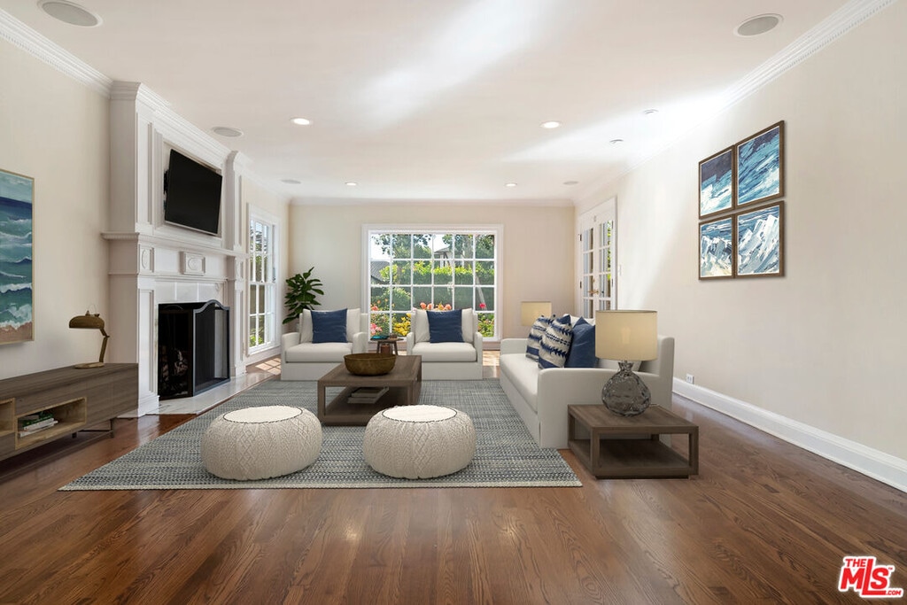 Enjoy life in the Huntington Palisades! This wonderful traditional two story family home is enhanced by beautiful gardens, a pool and a wonderful floor plan. There are two primary bedrooms, and three additional family bedrooms all with en suite baths. Built in the 1980's the upstairs offers one primary with two walk in closets, a lovely large bath and dressing area and a patio that overlooks the beautiful garden as well as another large bedroom and separate bath. Downstairs has the beautiful two story entrance open to the formal living room and side den/office. Other beautiful rooms are the formal dining with built in side cabinet for all kinds of treasures, the family room and kitchen and all open to the outdoor patio and gardens. This home has been restored and tested after the Palisades Fire. MLS# 26695615