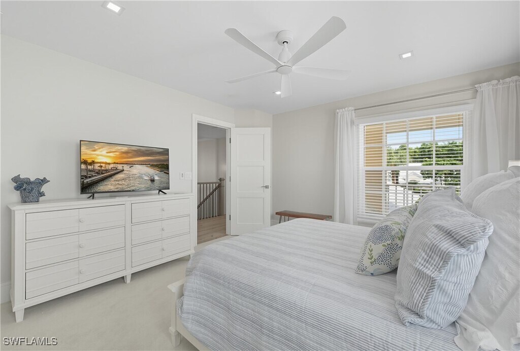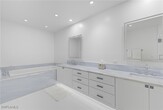Spectacular panoramic golf course view from this two-story remodeled from top to bottom Carlton Place Villa in Pelican Bay. Open,airy villa with southern exposure,3 bedrooms plus den and 4 baths. Very tastefully decorated with comfort in mind. The brand-new ground floor is transitional in style with all new kitchen appliances and a bar with a wine cooler and icemaker. The living room feature a large tv with great viewing lines. All the cabinet tops are very nice granite. The flooring is faux wood porcelain,Den has a sleeper sofa,desk and TV. The second floor has three bedrooms and three baths and a balcony off the master that overlooks the golf course and pool. Ceiling fans throughout. King bed and TV in Master. Queen beds in both guest bedrooms with TV. Carlton Place is a gated community within Pelican Bay and located a short walk from the north tram station for easy access to the beach. Community amenities include tram service to the North and South beach facilities which provide beach chairs and umbrellas,bathrooms,and two private restaurants on the beach. The North and South beach facilities are connected by more than a mile of undeveloped open beachfront. Other amenities include 2 tennis facilities and a State-of-the-Art exercise gym. The Naples Philharmonic and upscale Waterside Shops are nearby as well.