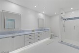 Spectacular panoramic golf course view from this two-story remodeled from top to bottom Carlton Place Villa in Pelican Bay. Open,airy villa with southern exposure,3 bedrooms plus den and 4 baths. Very tastefully decorated with comfort in mind. The brand-new ground floor is transitional in style with all new kitchen appliances and a bar with a wine cooler and icemaker. The living room feature a large tv with great viewing lines. All the cabinet tops are very nice granite. The flooring is faux wood porcelain,Den has a sleeper sofa,desk and TV. The second floor has three bedrooms and three baths and a balcony off the master that overlooks the golf course and pool. Ceiling fans throughout. King bed and TV in Master. Queen beds in both guest bedrooms with TV. Carlton Place is a gated community within Pelican Bay and located a short walk from the north tram station for easy access to the beach. Community amenities include tram service to the North and South beach facilities which provide beach chairs and umbrellas,bathrooms,and two private restaurants on the beach. The North and South beach facilities are connected by more than a mile of undeveloped open beachfront. Other amenities include 2 tennis facilities and a State-of-the-Art exercise gym. The Naples Philharmonic and upscale Waterside Shops are nearby as well. 90 day minimum
