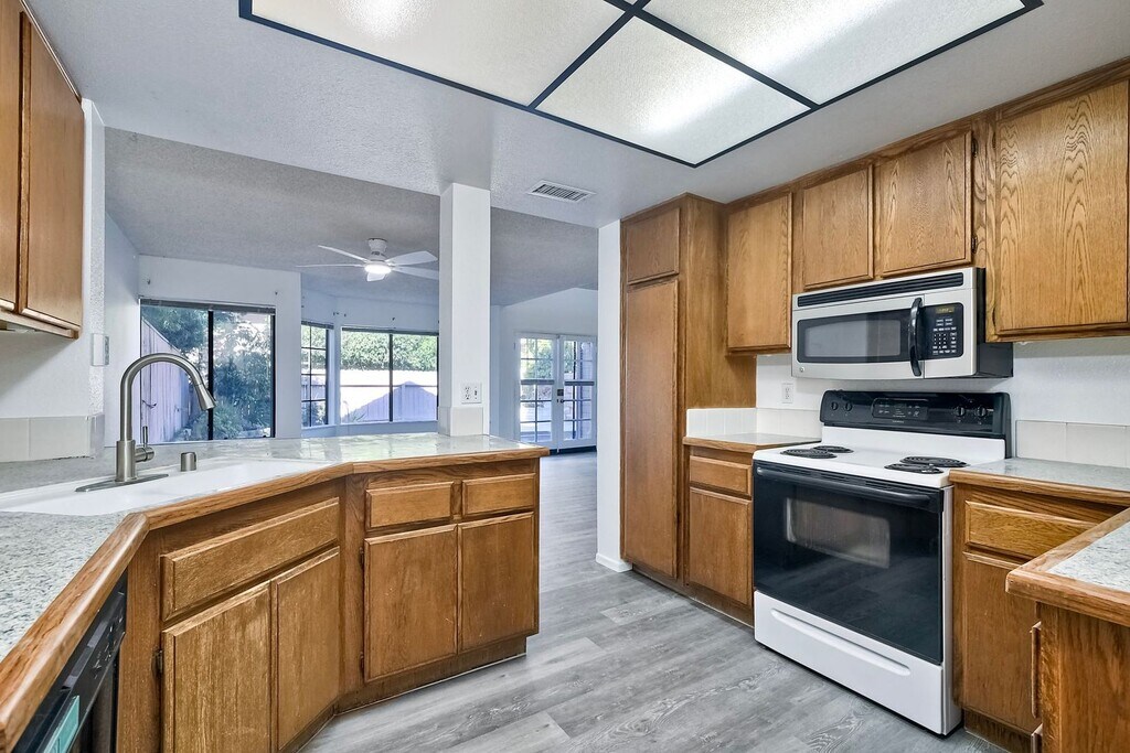 Welcome to this charming Morningside Woods home! This 2-bedroom, 2.5-bathroom residence offers 1,548 sq. ft. of updated living space with brand-new carpet and vinyl flooring and a freshly painted interior. The main floor features a spacious living and dining area leading to a well-equipped kitchen with a microwave, oven, stovetop, dishwasher, fridge, and a washer/dryer (available upon request). Upstairs, a versatile loft serves as an ideal office, home gym, or play area. A new backyard deck offers the perfect space to relax or entertain. This pet-friendly home includes two parking spaces (one garage). Tenants cover utilities, while HOA dues are included. Enjoy the welcoming community and prime location of Morningside Woods. Schedule your viewing today! If approved, resident will be responsible to pay a monthly pet fee of $45 per animal. Any other smaller animal(s) (dogs and cats excluded) that is approved, will be charged a monthly pet fee of $25 per month. Approval of any non-service animal is at the discretion of the property manager and/or property owner.