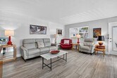 Well-planned,thoughtful renovations create an open,light-filled great room,ideal for entertaining or relaxing in comfort. This 2BR/2BA corner unit features new flooring,double-glazed windows,and custom interior doors. The guest room's windows were converted to sliders opening to a newly enclosed patio with elegant tile flooring. Both baths offer modern tile and glass enclosures. Conveniently located steps away from your parking space and no stairs. Walk to the pool and clubhouse and enjoy resort-style living with 3 clubhouses,2 golf courses,bistro & café,salon,heated indoor/outdoor pools,lap & resistance pools,tennis,fitness center,theater,arts & crafts,billiards,and courtesy bus service. Just minutes to vibrant Atlantic Ave and the beach! MLS ID B26018023