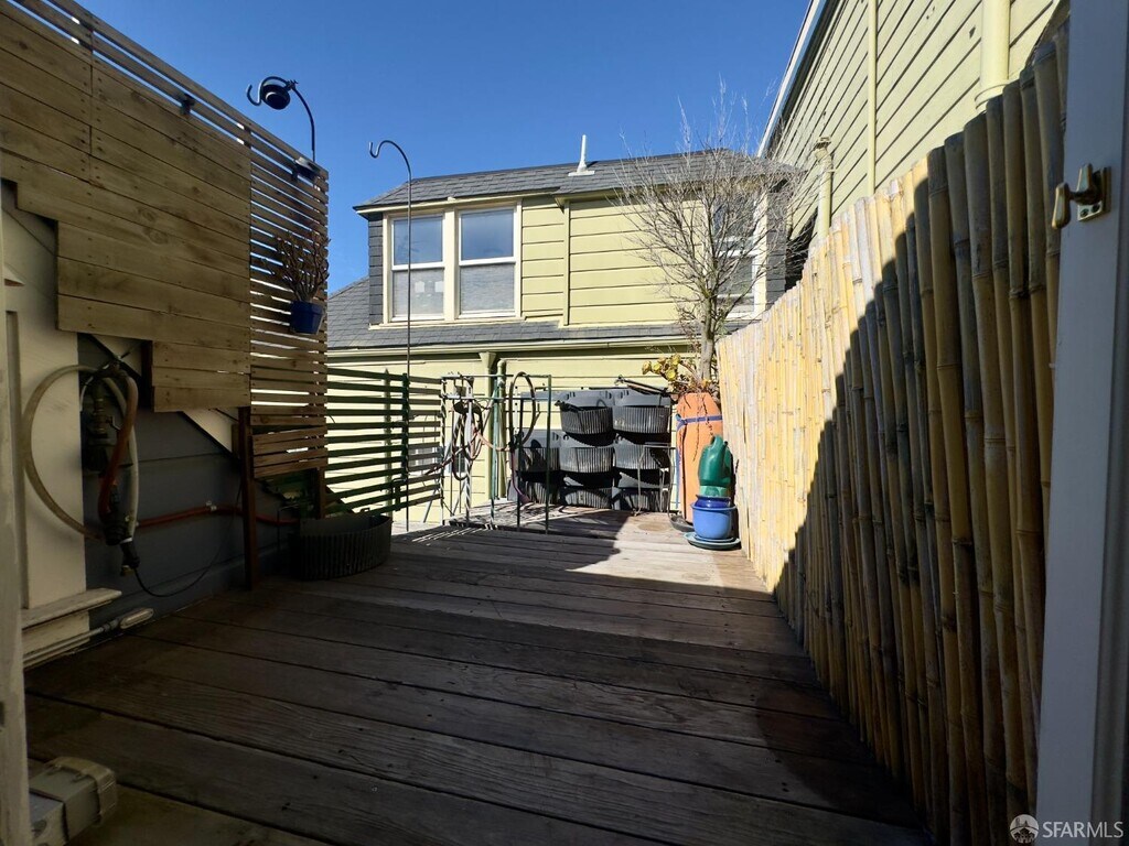 Top Floor Condo with private outdoor deck to peacefully soak in the beautiful sun! Remote controlled air conditioning mini splits in the living room and bedroom allow you to fine tune your environment for maximum comfort. A skylight with retractable shade bathes the kitchen with light. The shower also has a skylight above along with remote controlled hidden LED lighting. This converted Victorian home offers comfortable living in a cute package. This condo lies in Hayes Valley, and borders the Lower Haight, which is replete with some of the trendiest shopping and dining San Francisco has to offer. A leisurely 6-minute walk lands you in the heart of Hayes Valley, which is ever so buzzing with vibrant energy. No car? No problem. A 3-minute walk gets you to the 7 which takes you to the Salesforce Transit Center. Hopping on the 101 is just as easy, just a few blocks away from Oak to Octavia. The kitchen has been updated and refreshed with newer cabinetry, has a butcher block on wheels, a large fridge, and a gas stove. This condo is cozy and inviting. Laundry is shared in a room adjacent to the lobby. Cute outdoor patio with seating is also available and is common to the building. Enjoy the new Trader Joe's on Fulton. The Oak Gourmet convenience store is around the corner. MLS # 426117071