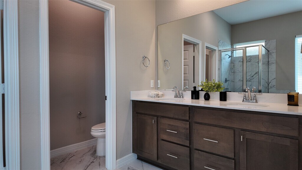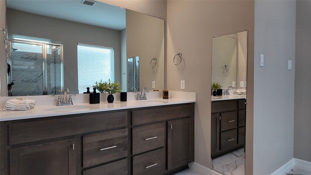 Beautiful two-story home with 4 bedrooms and 3 full baths. The first floor features the primary suite with a private bath including a soaking tub and separate shower,plus a secondary bedroom with access to a full bath—ideal for comfort and flexibility. Large windows fill the main living areas with natural light,creating a bright and inviting atmosphere. The open-concept layout offers a modern kitchen with a spacious island,quartz countertops,and elegant cabinetry,seamlessly connecting to the dining and family room. Curtains are already installed. Upstairs,enjoy a versatile game room perfect for entertainment. The home also features a covered patio and a private backyard with no rear neighbors,ideal for relaxing or gathering outdoors. MLS ID 20855340