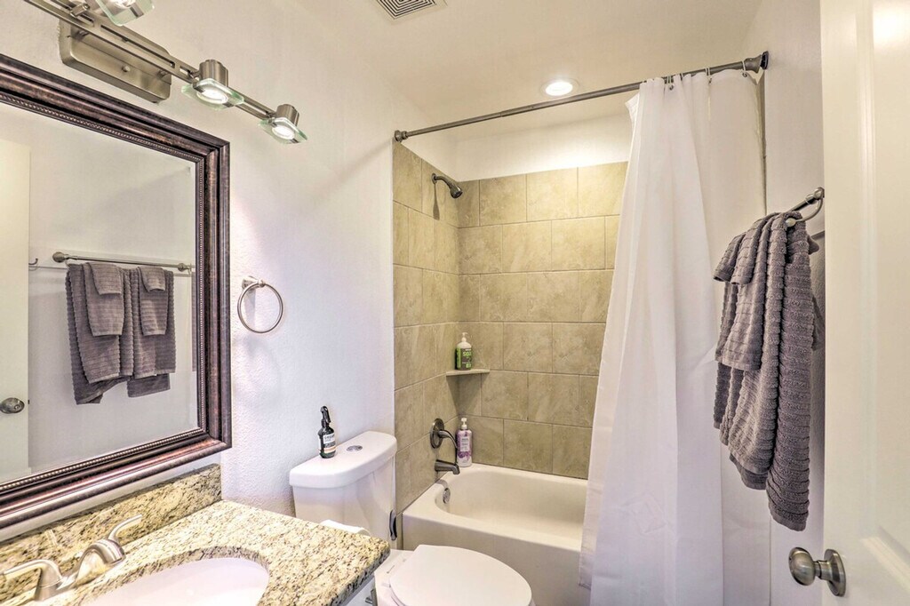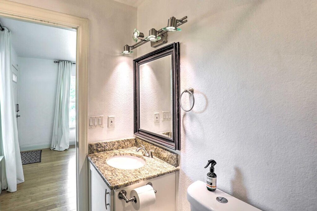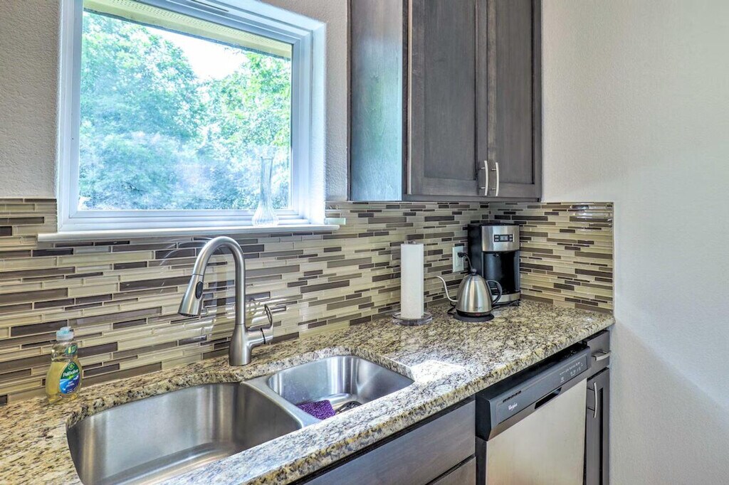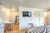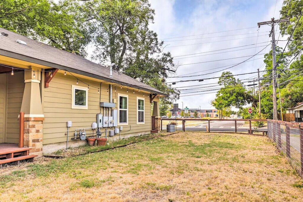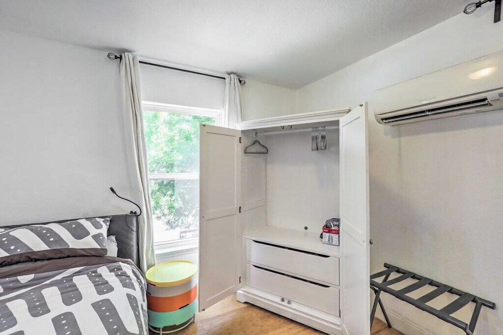 Feel at home in this ideally located 2nd-story, treetop studio in Austin, perfect for the adventurous solo traveler, young professionals, or city-goers in need of a change of pace. Stairs are required for access. This 400 sq ft studio features a well-stocked kitchen, a Smart TV, a dining area, central heating and A/C, linens/towels, complimentary toiletries, a hair dryer, and hangers. The kitchen includes a dishwasher, fridge, oven with 4-burner stovetop, microwave, coffee maker, electric tea kettle, toaster oven, cooking basics, dishware and flatware. Shared driveway parking is available for one vehicle, and free street parking is available. Easily explore all of the attractions and outdoor options of Austin. Explore the nightlife of 6th Street, check out the city's countless music attractions, or spend the day lazing at Barton Springs Pool. No events, parties, or large gatherings are allowed. Additional fees and taxes may apply, and a photo ID may be required at check-in. [SI]