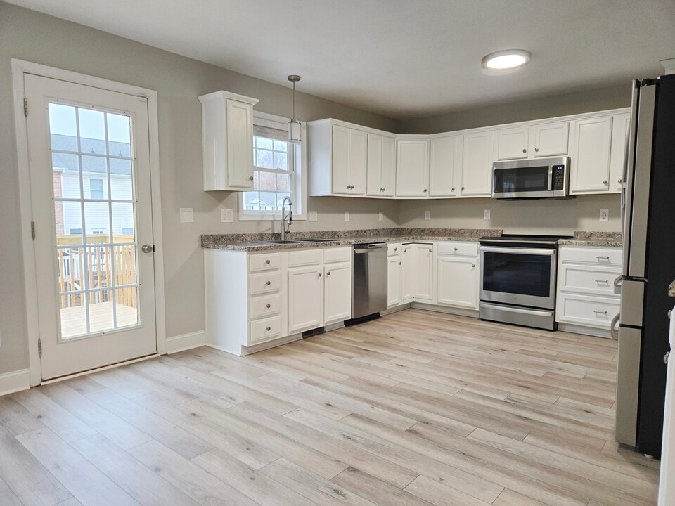 Fully updated 3 bed 2.5 bathroom Townhouse with unfinished walkout out 700 square foot basement. Rent includes sewer, water, trash, and landscaping, and washer/ dryer. New GE profile appliances, pantry, new deck, new modern flooring, smart thermostats, freshly painted. No smoking, vaping, or pets