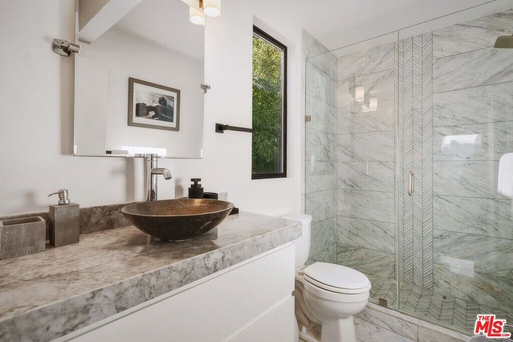 Experience ultimate seclusion in this architect-inspired Contemporary Modern retreat, hidden on a premier cul-de-sac South of the Blvd. This ultra-private sanctuary is defined by dramatic high ceilings and a seamless, light-filled flowperfect for those seeking a quiet, secure remodeled with an eye for detail, the home features all-new doors and windows and stunning wood plank floors sourced from Tennessee. The open-concept layout includes a custom separated office or day room, ideal for the modern professional seeking a quiet workspace. At the heart of the home is a remodeled gourmet kitchen, a chef's masterpiece with custom cabinetry, professional-grade stainless steel appliances, and a massive granite island.The primary suite is a sprawling haven boasting a beautifully renovated en-suite master bath with a jetted soaking tub and dual walk-in closets. Every guest bedroom serves as a private en-suite sanctuary, ensuring total peace and comfort.The Zen-like backyard offers a rare outdoor escape, complete with a built-in BBQ, fire pit, and a steaming spa-tub designed for pure relaxation under the stars. Located moments from Dixie Canyon hiking trails and the vibrant dining of Ventura Blvd within the prestigious Dixie Canyon Community Charter School district, this turnkey estate delivers the perfect blend of hilltop tranquility and effortless Westside access. MLS# 26727667