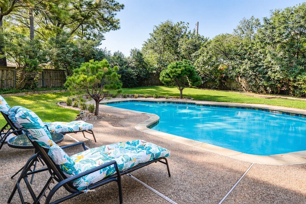 The advertised rate of $6,073/month is the lowest available price, based on a 30 day(s) stay with a move-in date of August 3, 2026. Rates vary depending on the duration of stay, season, and other parameters. For exact pricing and additional pricing components, please visit our website and enter your desired move-in and move-out dates. The rate is applicable when billed upfront; it can be higher if billed in multiple payments. Escape to this spacious 3-bedroom, 3-bath home in Bedford and feel at home in a private backyard oasis. This home is perfect for families, friends, or DFW travelers. This thoughtfully designed home includes a spacious living room perfect for relaxing or movie nights, a fully equipped kitchen for meals at home, a dining space for shared meals and conversations, and a large backyard with a private pool. Amenities include fast Wi-Fi, a smart TV, a washer and dryer, outdoor seating, and central AC and heat. Free parking is available. Located in the quiet Mid-Cities area between Dallas and Fort Worth, you’ll have easy access to top attractions, restaurants, and events. It's a short drive to DFW International Airport, downtown Dallas, Fort Worth Stockyards, Six Flags Over Texas, Globe Life Field & AT&T Stadium, shopping, and great restaurants. Enjoy the best of both worlds with a peaceful neighborhood and easy access to the entire metroplex. No smoking, vaping, drug use, or parties are allowed. No glitter is permitted. There are to be no unauthorized pets or guests. [SI]