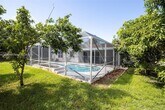 If you're looking for space, this home delivers! Step inside and discover a truly ample and open living area with a desirable split-floor plan, perfect for privacy and flexible living. Two bedrooms are located on one side of the home, while the other two are on the opposite side. Head outside to your own private oasis. The home boasts a beautiful screened-in pool with a covered terrace, creating the ideal spot for relaxing or entertaining. For added peace of mind, there's also an additional child-safety fence around the pool. Situated on a large corner lot, this home is surrounded by plush, mature landscaping that provides both beauty and privacy.