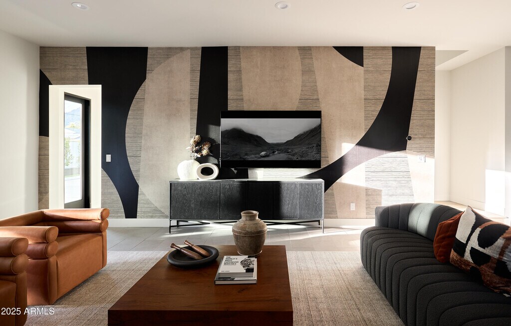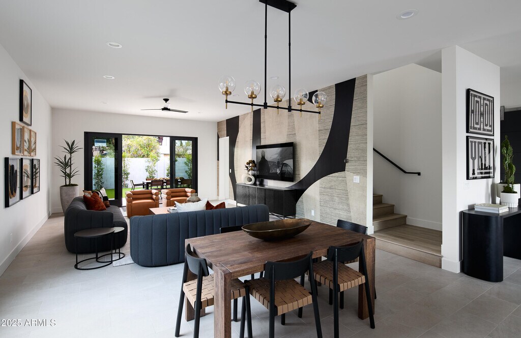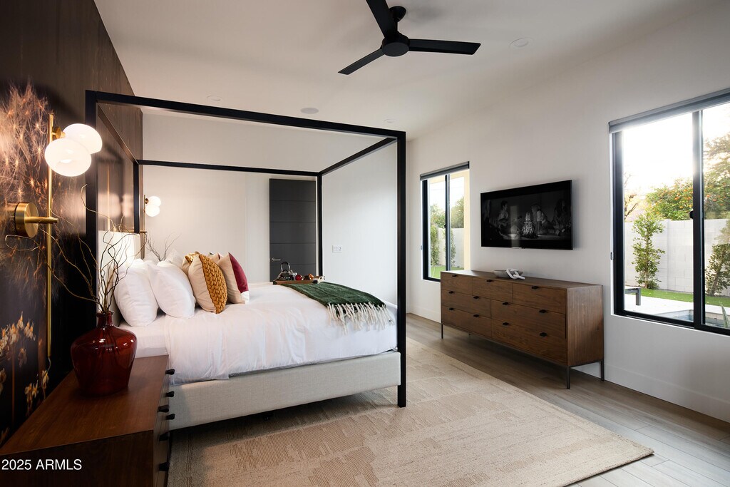 Welcome to Boho House,a stunning two-story residence in the heart of Scottsdale offering five bedrooms,five bathrooms,and modern boho design throughout. This spacious home combines contemporary style with comfort,creating an ideal setting for long-term living. Nestled near premier dining,shopping,and outdoor recreation,the property also boasts beautiful views of Camelback Mountain and easy access to the best of Scottsdale living. The main living area is filled with natural light and designed for relaxation,featuring comfortable seating and a modern fireplace. A second living space upstairs provides additional flexibility with its own seating area,game table,and covered balcony overlooking the mountains. Welcome to Boho House,a stunning two-story residence in the heart of Scottsdale offering five bedrooms,five bathrooms,and modern boho design throughout. This spacious home combines contemporary style with comfort,creating an ideal setting for long-term living. Nestled near premier dining,shopping,and outdoor recreation,the property also boasts beautiful views of Camelback Mountain and easy access to the best of Scottsdale living. The main living area is filled with natural light and designed for relaxation,featuring comfortable seating and a modern fireplace. A second living space upstairs provides additional flexibility with its own seating area,game table,and covered balcony overlooking the mountains. The kitchen is a true highlight with stainless steel appliances,a large island for meal prep and casual dining,and seamless flow into the dining area,which accommodates family meals and gatherings alike. The home's five bedrooms are thoughtfully designed for comfort and privacy. The primary suite,located on the first floor,includes a king-sized bed,a sitting area,backyard access,and a spa-style ensuite with dual vanities,soaking tub,and walk-in shower. Upstairs,the additional bedrooms each carry a distinct style. One suite features a king bed with modern accents and a private ensuite; another offers two queen beds with vibrant décor and its own bathroom; a third provides a king bed with seating,mountain views,and an ensuite; and the fifth bedroom includes a king bed with tasteful furnishings. A full additional bathroom upstairs supports the secondary living space. The backyard serves as a private retreat,complete with a sparkling pool,sun loungers,and covered patio dining with a built-in BBQ. Designed for year-round enjoyment,it's an ideal place to relax,entertain,or simply take in the desert sunsets against the backdrop of Camelback Mountain. Additional conveniences include a dedicated laundry room with washer and dryer,a two-car garage with driveway parking,and extra guest parking on the street. With five full bathrooms,multiple living areas,and a backyard oasis,Boho House provides a rare opportunity to lease a newly furnished,design-forward home in one of Scottsdale's most desirable neighborhoods.