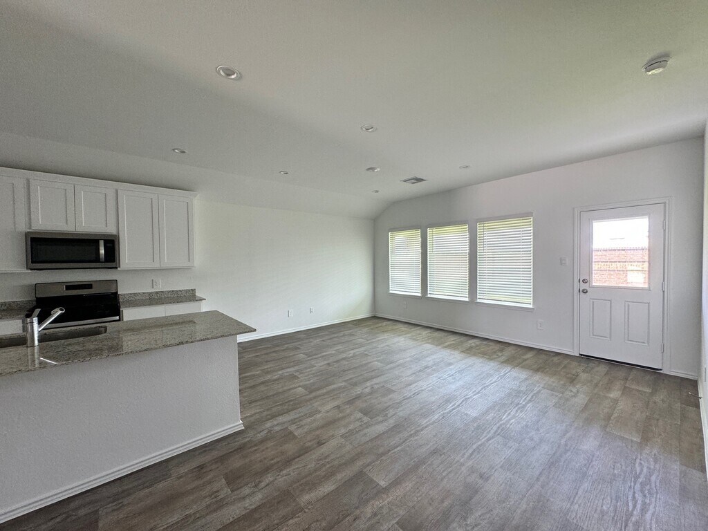 Move-in ready,this one-story home comes equipped with a washer,dryer,and refrigerator! It features 4 bedrooms,2 bathrooms,and a 2-car garage. A lengthy entryway opens into a kitchen and Dining area with an open concept layout. The kitchen is equipted white white cabinets,stainless steel appliances,and a corner pantry,all flowing seamlessly into the family room. The primary suite offers a sloped ceiling and a stylish bathroom with dual vanities,upgraded large shower,and a walk-in closet. A standard covered patio extends from the family room. Tenants should verify room dimensions and school information. MLS# 5777827