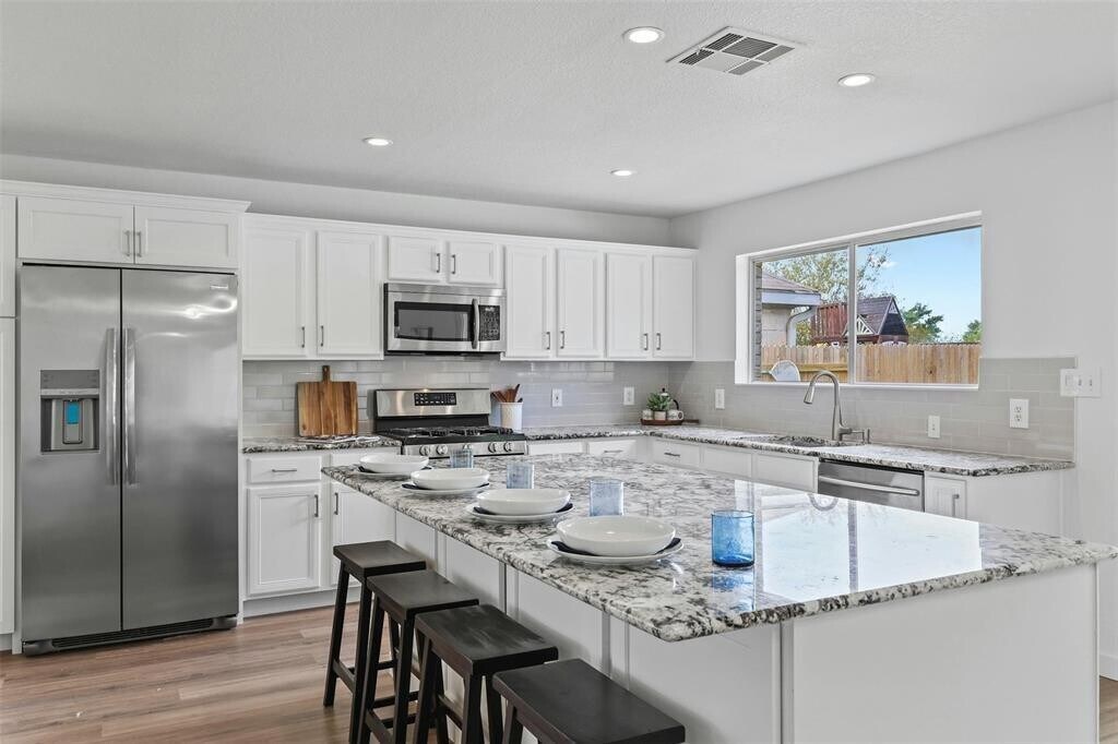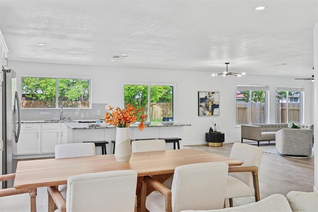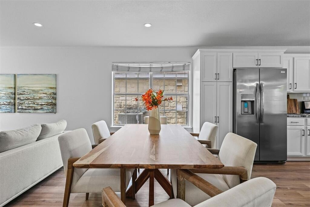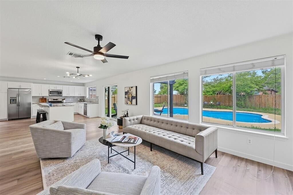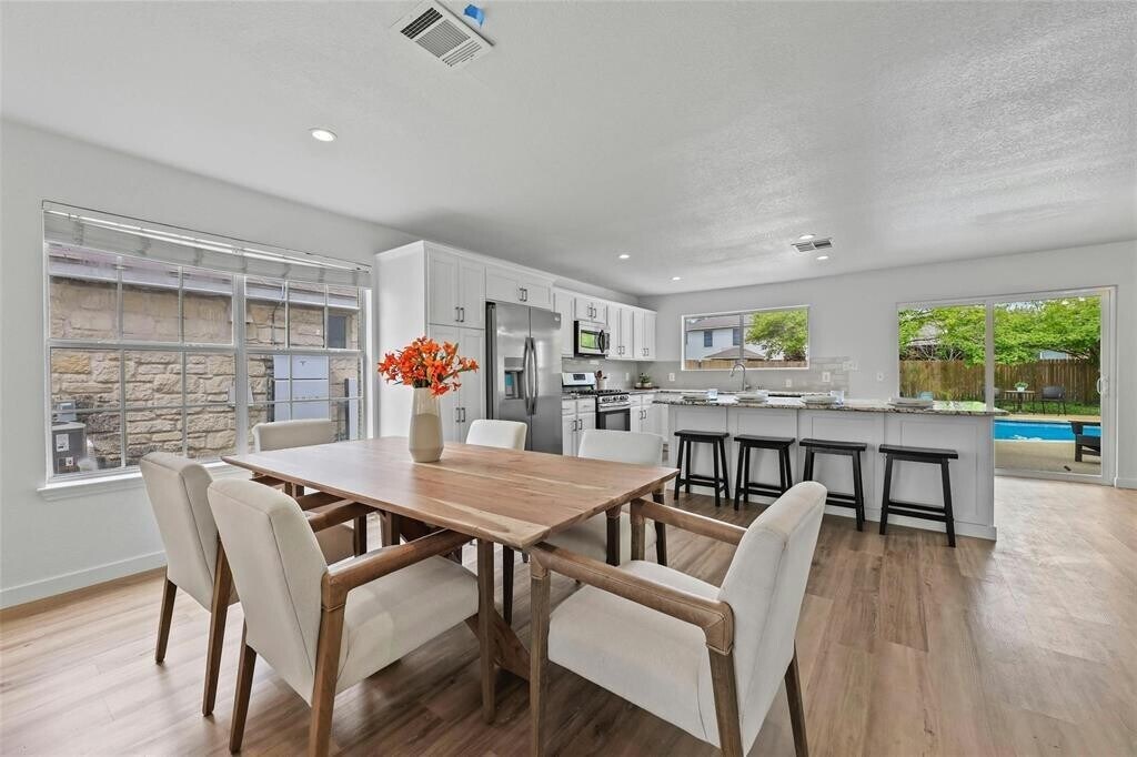 This beautifully updated 2-story home is nestled in a tranquil, established neighborhood and features 4 bedrooms, 2.5 baths, multiple living spaces, and a private pool/spa. As you step inside, you'll be welcomed by a bright and airy interior filled with natural light, crisp white walls, modern light fixtures, and gorgeous hardwood floors that flow throughout the open-concept layout. Off the entry, a formal living or flex space offers versatility, making it ideal for a home office or additional seating area. The large dining room, perfect for entertaining, is adjacent to the chef's kitchen, which boasts a center island, breakfast bar, granite countertops, white cabinetry, and stainless-steel appliances. The kitchen opens to a spacious family room featuring a cozy wood-burning fireplace. Sliding glass doors lead to the backyard oasis, complete with a pergola-covered patio and a sparkling in-ground pool/spa—ideal for relaxation and outdoor fun. Upstairs, retreat to the luxurious primary suite, which includes a sitting area, two walk-in closets, and a spa-inspired bathroom with a dual vanity, jetted soaking tub, and frameless walk-in shower. Three additional guest bedrooms, an updated guest bath, and a convenient laundry room with built-in storage complete the second floor. Located near major roads, shopping, dining, and entertainment, this home provides easy access to all the essentials. Additional highlights include a refrigerator, along with access to highly regarded Round Rock ISD schools. Don't miss the chance to see this gem—schedule your showing today! MLS ID 4655216