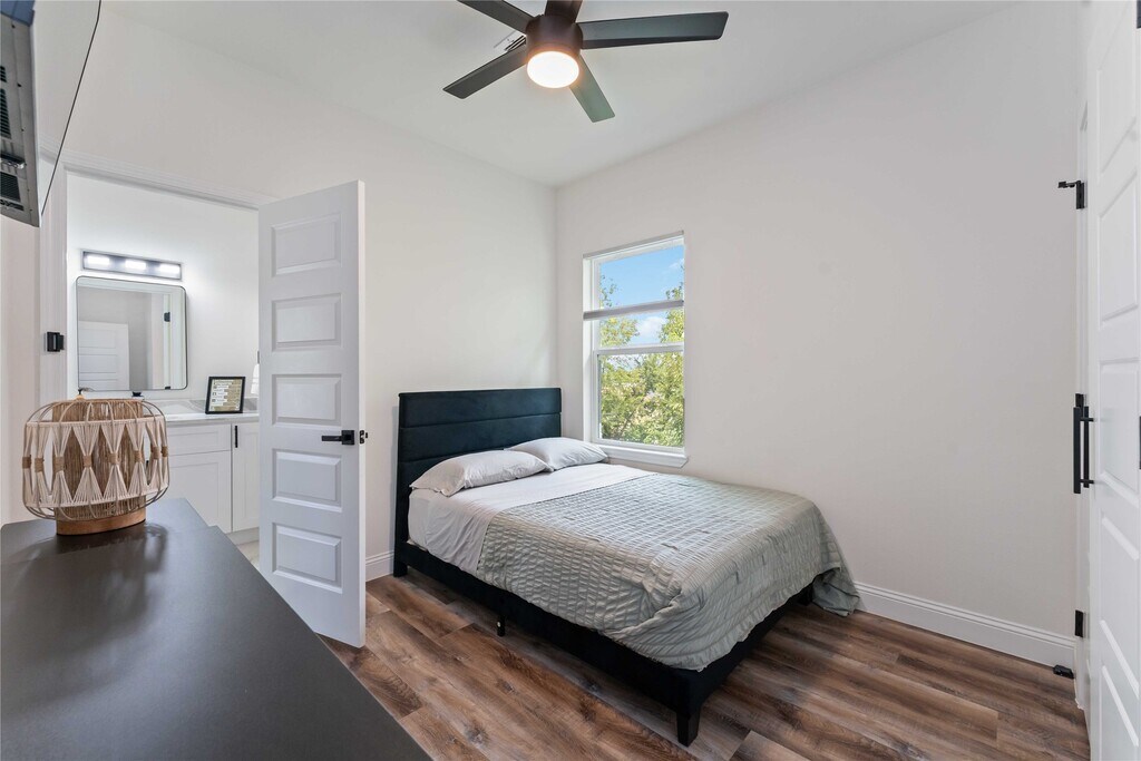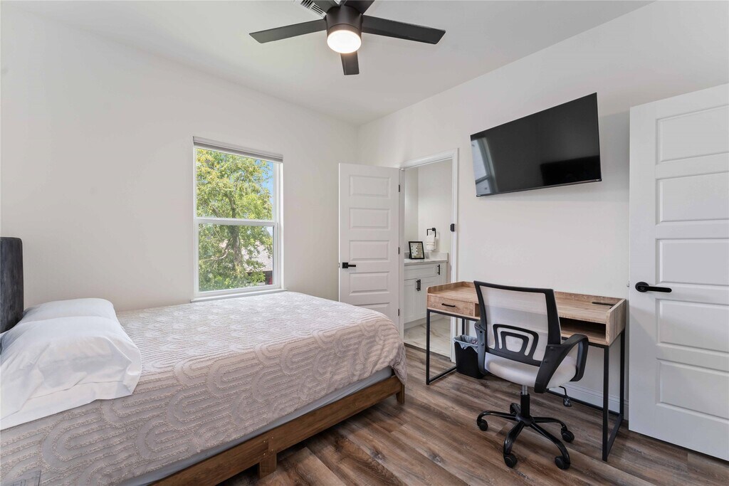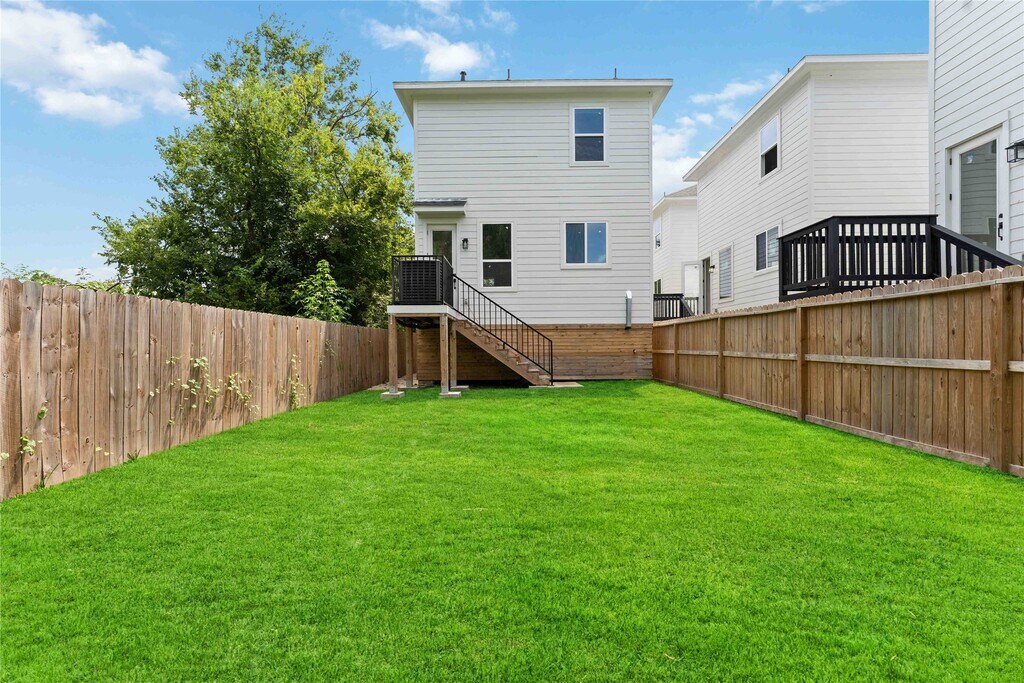 Immaculate fully furnished new construction townhome in the prestigious 5th Ward! This 3 bed,2.5 bath home features a grand entry with soaring ceilings,quartz countertops,custom soft-close cabinets,and high-efficiency stainless steel appliances—including gas range,washer/dryer,and tankless water heater. Stylish vinyl and tile flooring throughout. The spacious living/dining area is perfect for entertaining,while the upstairs primary suite offers a spa-like bath with double vanities,walk-in shower,and dual closets. Enjoy added peace of mind with an alarm and camera system plus gated,remote-controlled entry. Relax in your private backyard or explore nearby amenities—just 2 miles from Downtown,1 mile from East River Project,and close to Discovery Green,dining,and EADO attractions. MLS# 19561503