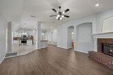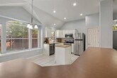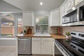 Beautiful 4-bedroom, 2-bath home ideally situated in Denton. This spacious home offers an open and inviting floor plan with generous natural light throughout. The kitchen features stainless-steel appliances, ample counter space, and both a breakfast bar and island, with the space opening to the main living area, perfect for everyday living or entertaining. The primary suite is privately located at the rear of the home and includes a walk-in closet and ensuite bath with dual sinks and a soaking tub. All bedrooms feature newly installed luxury vinyl flooring for a clean, modern feel. A flexible front room offers endless possibilities as a home office, second living area, or playroom. Step outside to enjoy a covered patio, ideal for morning coffee or evening gatherings. Refrigerator, washer, and dryer are provided by the landlord for added convenience. Lawn care can be included for an additional $100 per month. The home is also just a short distance from the community pool, making warm Texas days even more enjoyable.