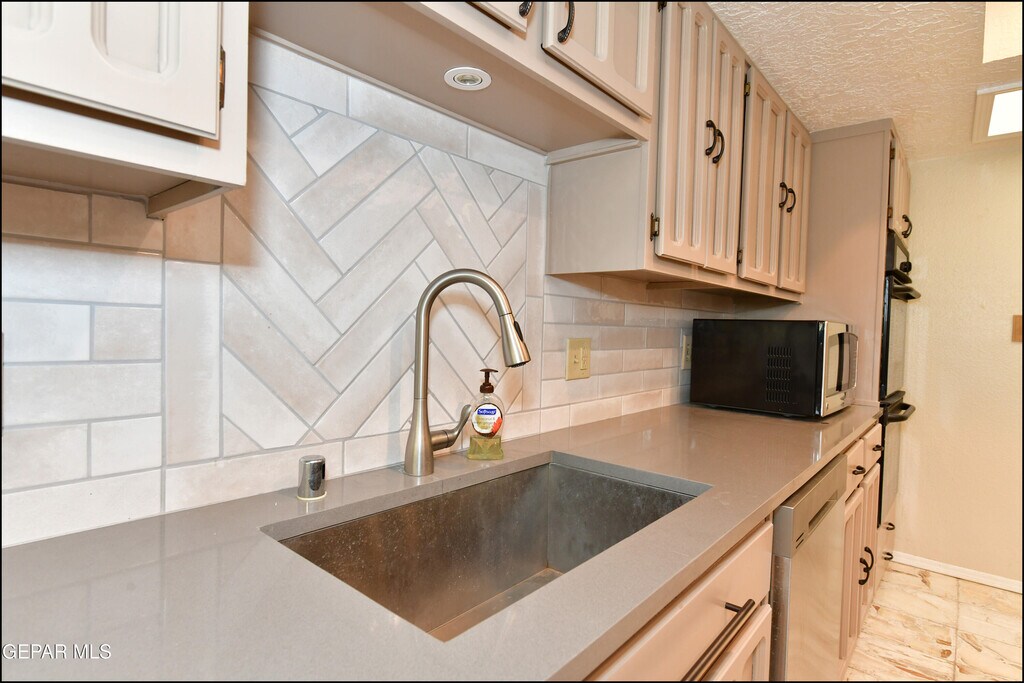 Welcome to this charming four-bedroom,three-bathroom retreat,where comfort meets functionality. This home greets you with a bright and flexible front room,ideal for a formal sitting area or a playful children's nook. The open floor plan connects the cozy family area to a stunning kitchen,highlighted by a dramatic dark stone backsplash,a spacious island for meal prep,and a practical walk-in pantry. Each of the four bedrooms provides a comfortable sanctuary,with the owner's suite featuring a luxurious five-star shower and private outdoor access. The expansive backyard,fully enclosed for privacy,is perfect for pets,gardening,or hosting summer gatherings. Situated in Horizon City,this residence places you in a tranquil setting that feels worlds away,yet is only minutes from essential amenities like schools,shopping centers,and major roadways for an easy trip into El Paso. Deposit-Free Renting service to Obligo qualified renters,fees may apply.