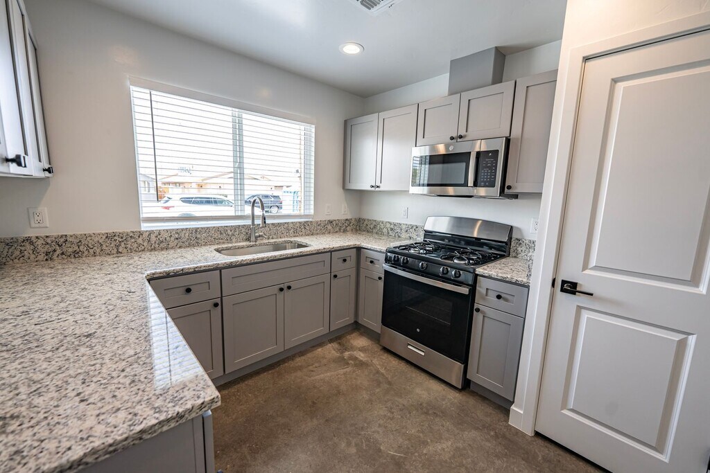 4 bedroom, 2 bathrooms, 2 car garage home. This home includes a dishwasher, gas range, and microwave. This home also includes washer and dryer hookups, cabinets, landscaping, fans, light fixtures, central heating and cooling, all concrete flooring, and a fully enclosed backyard. This home is perfectly located close to shopping centers, hospitals, food, and more! Rental Insurance is required to rent this home. In-person viewings are limited to approved applicants only.