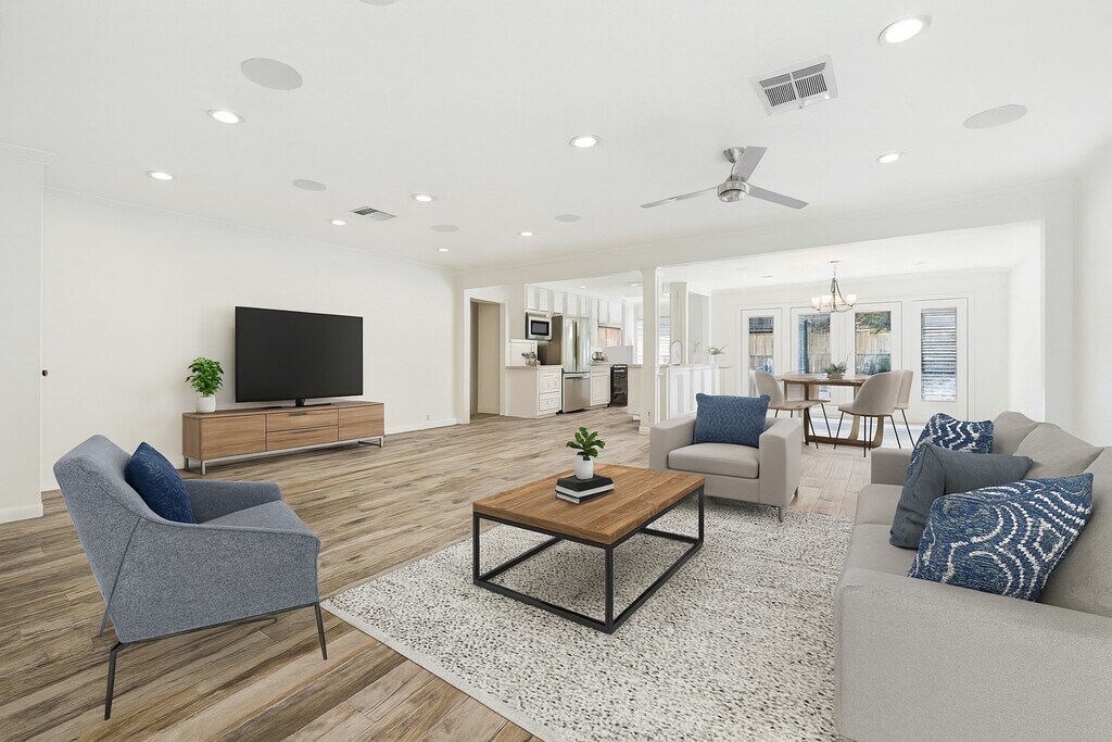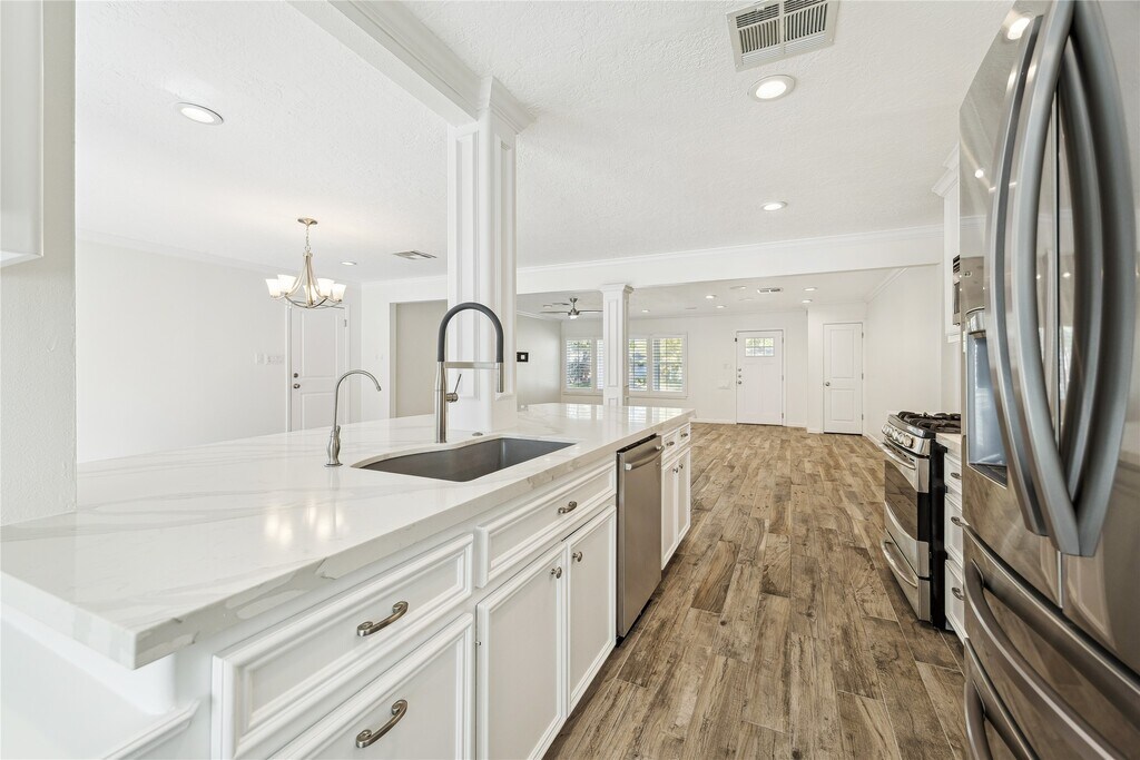 A picture perfect,fully updated one story home located on a beautiful wooded street in the heart of Houston's Knollwood neighborhood,just minutes from Rice Village,Rice University,Downtown and the Texas Medical Center. This immaculate home with it's neutral cream and grey color scheme offers an ideal blank canvas for you to turn this rental home into your very own,personalized sanctuary. With a modern,open floor plan,the natural light effortlessly flows from the front living area to the sunny updated kitchen and dining area,where you can open up the double glass patio doors onto a deck and huge backyard,enjoying seamless indoor/outdoor living. The kitchen and bathrooms have all been fully updated,one bathroom with a stand alone shower and the other with a tub. Get cozy at night and control your privacy with plantation shutters in every room. The grassy backyard is huge thanks to the 8541 sf lot. A rental as pristine as this one is hard to find! MLS# 85306380