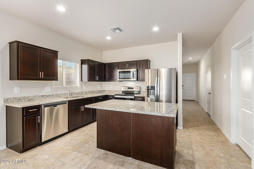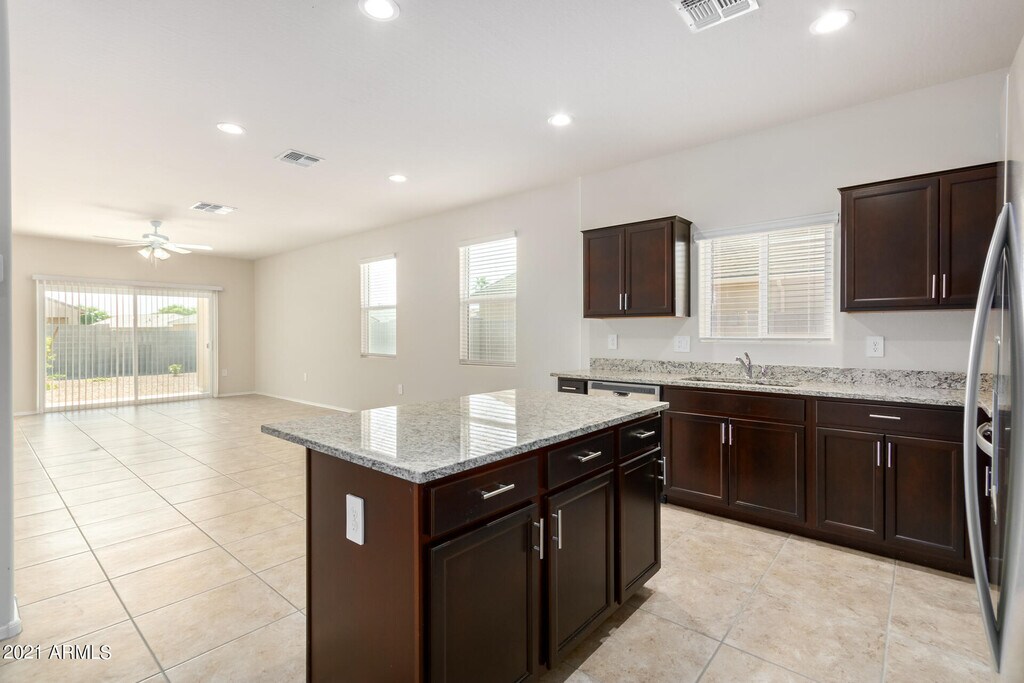Gorgeous single-story 4-bedroom + den home built just a few years ago! Step inside to a welcoming foyer that flows past the den and into the open-concept kitchen,dining,and great roomperfect for modern living and entertaining. The spacious primary suite features dual sinks,a large walk-in shower,and a generous walk-in closet. Enjoy a huge laundry room with abundant storage. The covered patio and low-maintenance desert landscaping create the ideal space for weekend BBQs and outdoor living. Additional upgrades include granite countertops,hardwood cabinets,smart home technology,rain gutters,18x18 tile in wet areas,upgraded stain-guard carpet,and an electric smooth-top range. Close to schools,parks,and shopping,this beautiful home is move-in ready!