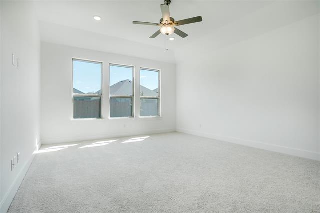 Ready for April 10 move in. Welcome to this beautiful 4 bedrooms, 3.5 bath home in the desirable Creeks of Legacy West. You'll immediately notice, the enormous living room that boasts soaring ceilings and wall of windows overlooking the lush backyard. The kitchen has upgrades galore with a massive island, granite counter tops, mosaic tile backsplash, beautiful shaker cabinets, gas cooktop and a large walk-in pantry. Living room, kitchen and breakfast room flow seamlessly in an open concept great room, providing inclusion for all in entertaining or everyday living. The sizeable primary suite, located on the first floor, sits privately at the rear of the home and offers an en suite bathroom with linen closet, oversized upgraded shower, extended vanity with dual sinks and large walk-in closet. Spacious guest bedroom with a full bath is also located on the first floor. Designated office with French doors sits toward the front of the home, and offers a flexible space for working, schooling, or even a reading room. Two more spacious bedrooms are located upstairs, along with a full bathroom, and another huge living area. This home offers so much space for entertaining, hanging out, or just being comfortable in everyday living. Move outside to enjoy time in the open air. The large backyard with extended covered patio is the perfect place for coffee, outdoor play, soaking up the sun, or gazing at the stars. The oversized garage offers extra storage for bikes, lawn equipment, and so much more. Ideal location, zoned for exemplarily rated Prosper ISD, with easy access to highways, major thoroughfares, shopping and entertainment. As a resident of Creeks of Legacy West, you'll have access to community pool, splashpad, walking trails, clubhouse with fitness center, and more! Don't miss out on this gem. Schedule your showing today!
