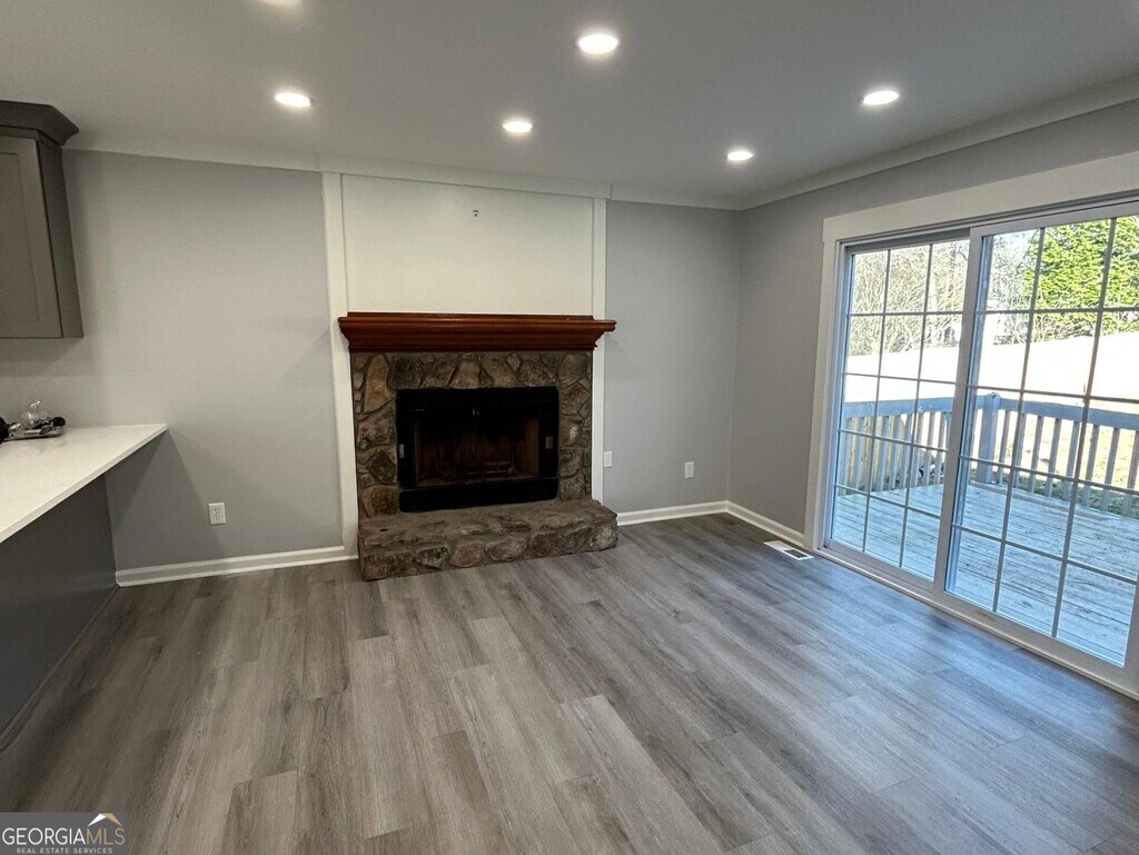 Don't miss this lovely ranch home in Lassiter/Mabry/Rocky Mount School District. This lovely 3 bd/2.5 bath features many recent upgrades including stunning new kitchen, new cabinetry, stainless steel appliances, new flooring. Open floor plan has large family room with bay window, den with fireplace and separate dining. Oversized master suite with French doors leading to its own private deck. Back yard is fenced back yard. Call agent for easy showing. No HOA. Available January 3, 2026. MLS ID 10656932