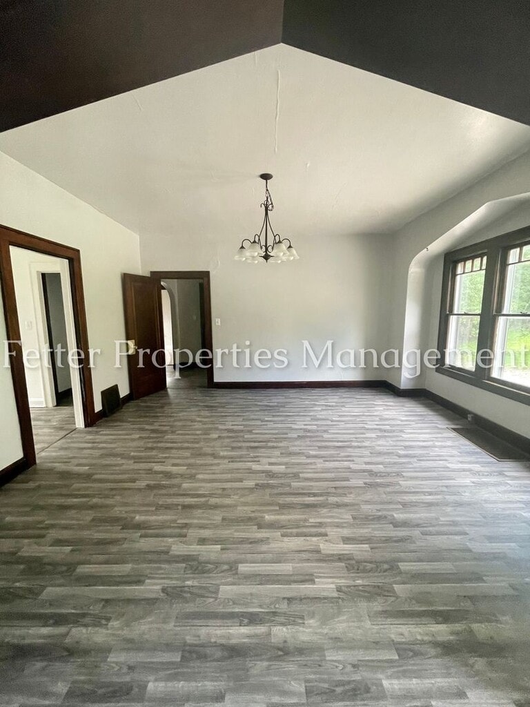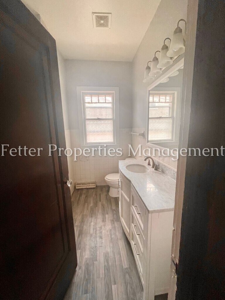 Stunning 3 bedroom, 1 1/2 bathroom home with a large yard! This is a beautiful home with so many perks including a garage, large porch, spacious backyard, Bonus Room which could be a third bedroom, un-finished basement with plenty of storage, and kitchen appliances included. Enjoy sitting on your front porch and never worry about a laundromat again with washer/dryer hookups. Amazing updated flooring throughout the home and modern vanities installed in bathrooms. Lawn mowing is included. Don't forget to bring your furry friends along (with restrictions)! To schedule a showing call the office at .