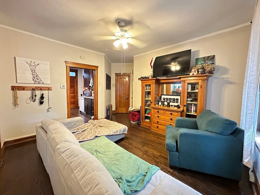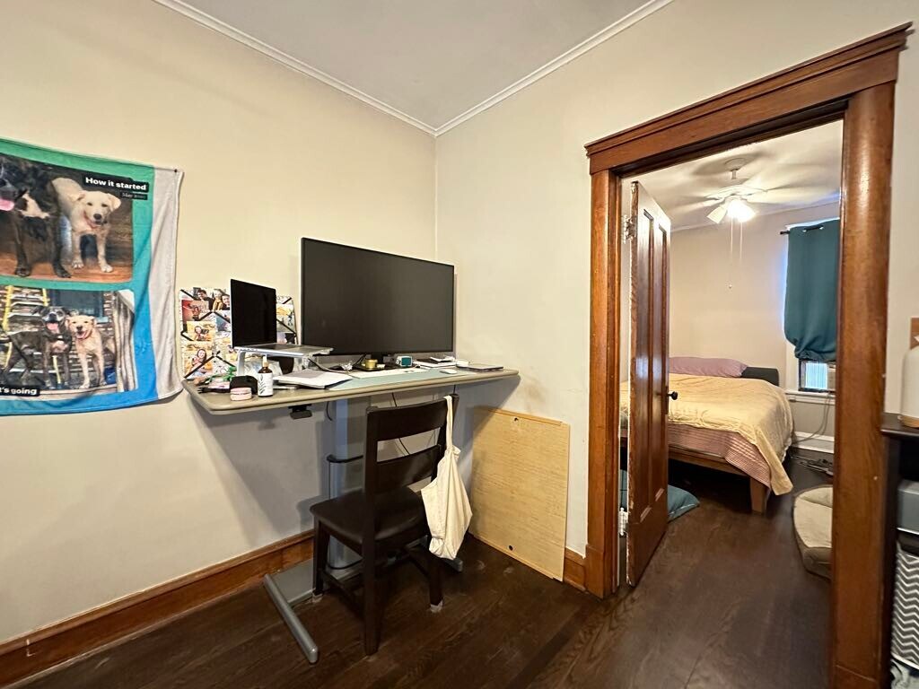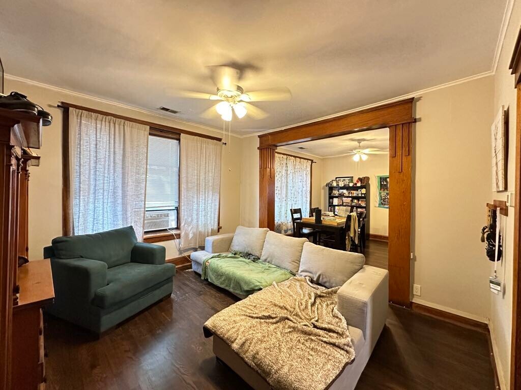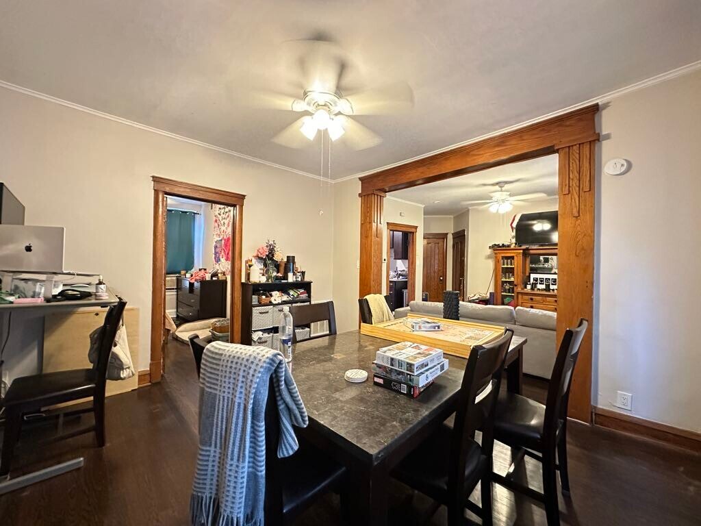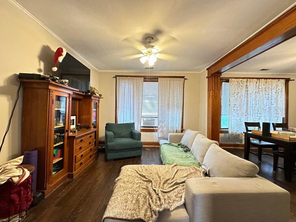 We now offer virtual video tours of all of our apartments! Schedule a virtual tour and rent this apartment from the comfort and safety of your home! Apply online! Lovely one bedroom plus den or office, one bathroom in Irving Park walkup features newer kitchen with espresso cabinets, dishwasher, pantry, separate dining room with built in hutch, large living room, ceiling fans, hardwood floors, rehabbed bathroom, vintage woodwork, spacious bedroom, great closet space, laundry room in building, pets welcome, spacious shared yard, and easy street parking! Won't Last Long!
