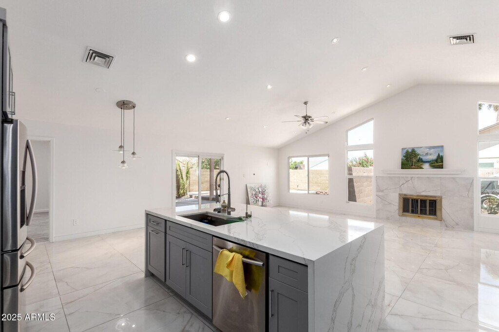 Fabulous 4 Bd 3 Bathroom home with over 1937 sf of rennovated living space. Fresh and modern interior,open floor plan with vaulted ceilings and amazing light regardless of time of day. Two master suites and 2 additional bedrooms -- no carpet! 2 car garage with two slab parking spaces,updated appliances. Terrific desert landscaped yard with lots of room. Located near everything -- Chandler Festival Mall,highways and schools.