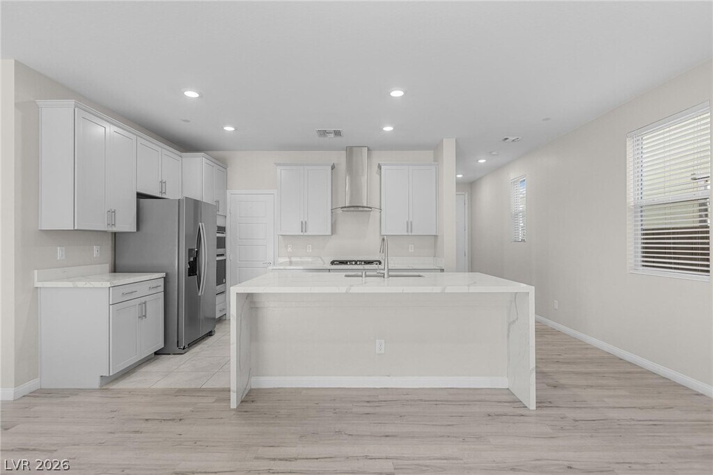 Situated in the highly desirable Summerlin West community, this stunning 4-bedroom, 2.5-bath residence blends modern design with effortless functionality. A thoughtfully designed open-concept layout fills the home with natural light, creating a seamless flow between the main living spaces—ideal for both entertaining and everyday living. The chef-inspired kitchen is equipped with stainless steel appliances, ample cabinetry, and a spacious island that serves as the heart of the home, overlooking the dining and living areas. Upstairs, a versatile loft provides the perfect space for a home office, media room, or additional lounge. Step outside to a covered patio designed for year-round enjoyment, complemented by a generously sized backyard ready for your personal touch. With stylish finishes throughout and close proximity to parks, scenic trails, shopping, and dining, this home offers the perfect blend of comfort, convenience, and modern living.