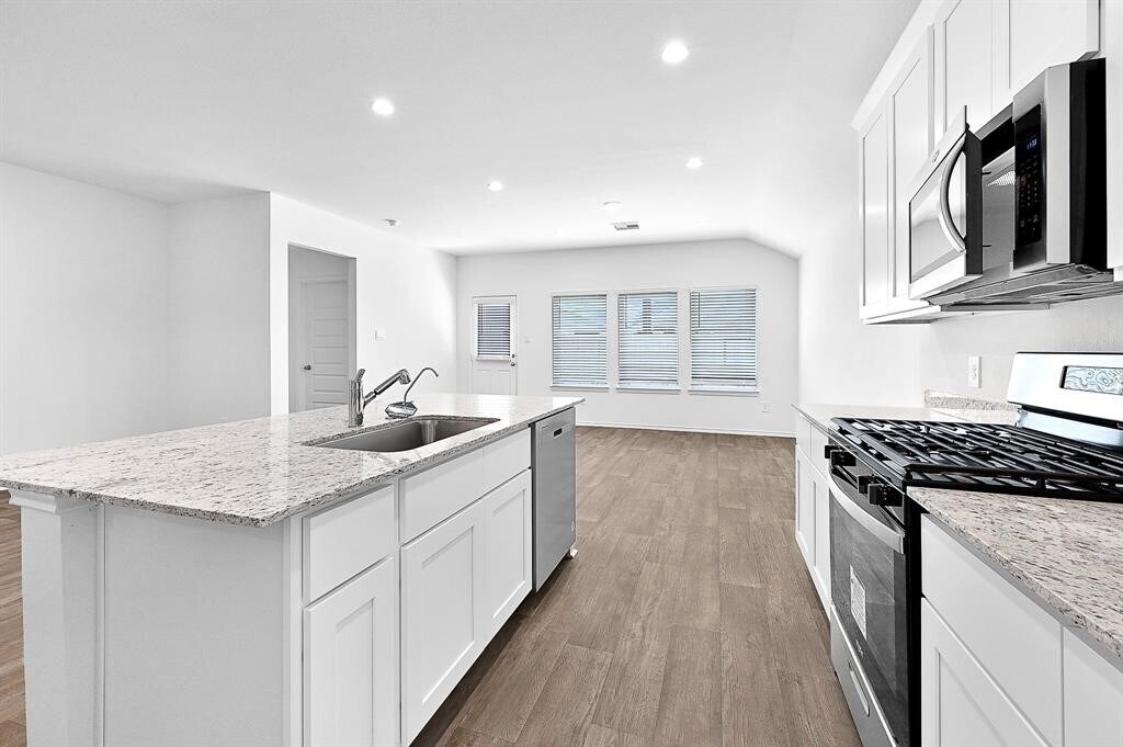 Beautiful single story home offering 4 bedrooms,2.5 bathrooms,and a 2 car garage. The welcoming foyer leads to two secondary bedrooms and a full bath,complete with a convenient hallway linen closet. An additional bedroom,powder bath,and coat closet are thoughtfully positioned just before the spacious main living and dining areas. The open concept kitchen features a breakfast bar,stunning granite countertops,and seamless flow into the inviting family room,perfect for both everyday living and entertaining. The private primary suite boasts a sloped ceiling and an elegant en suite bath with dual vanities,a water closet,and a generous walk in closet. Enjoy outdoor living on the covered rear patio located just off the family room. Throughout the home,you’ll find stylish Wool Oak luxury vinyl plank flooring paired with Silver Dollar carpet,creating a warm and cohesive design. MLS# 60785427