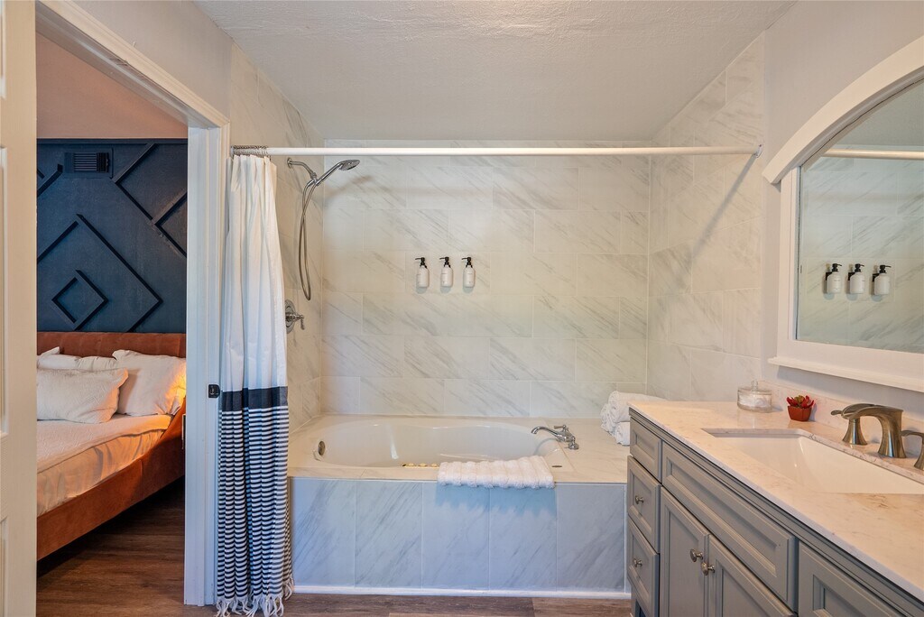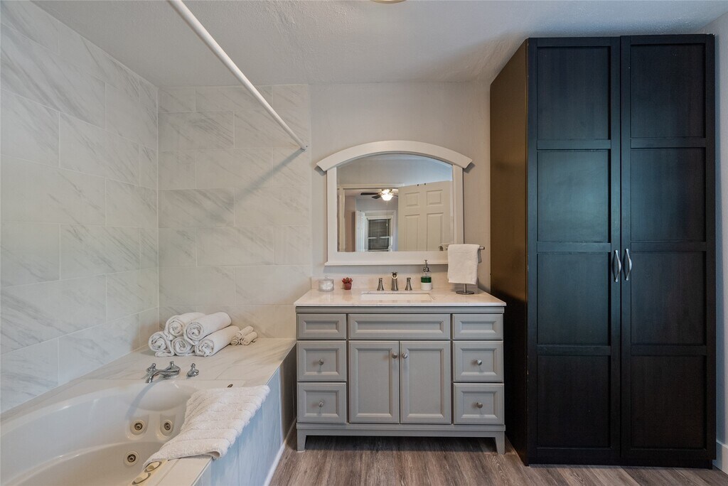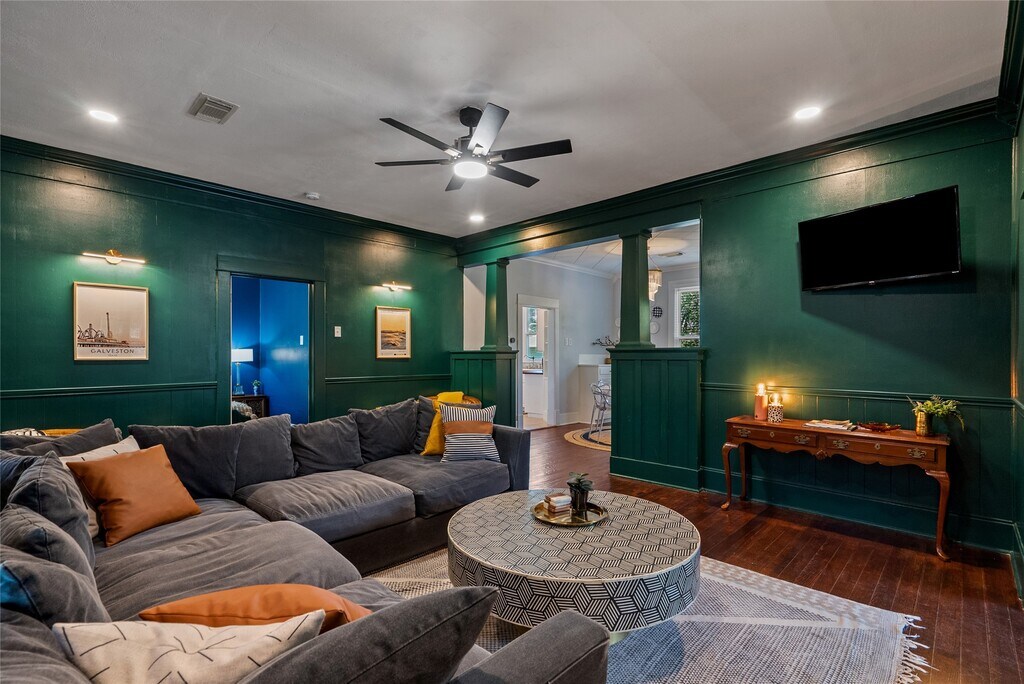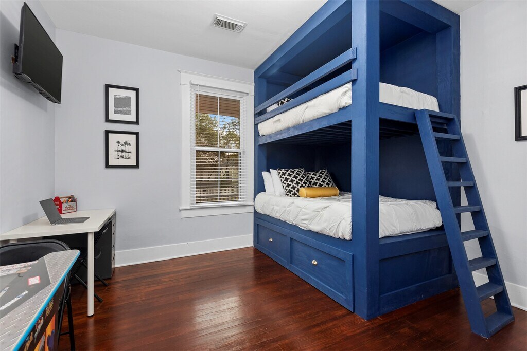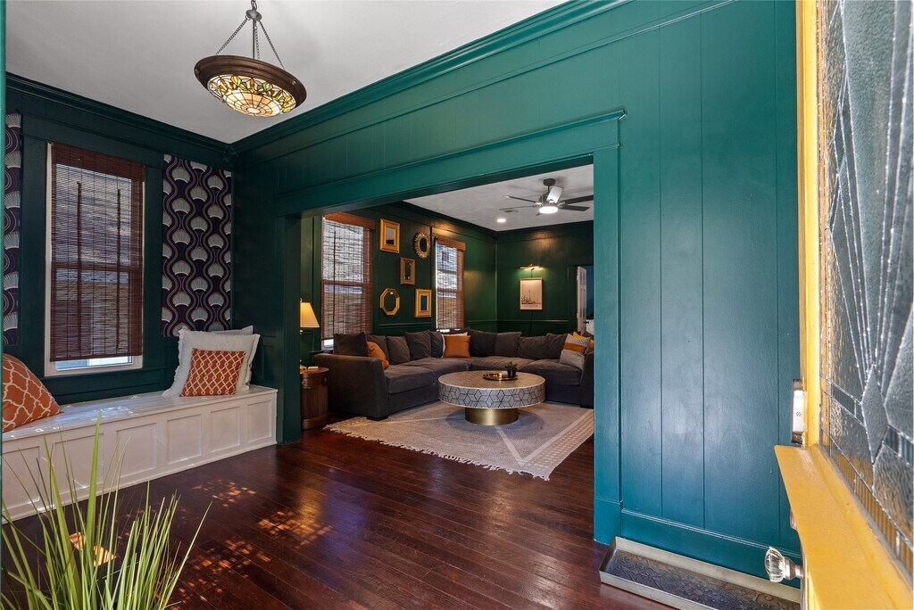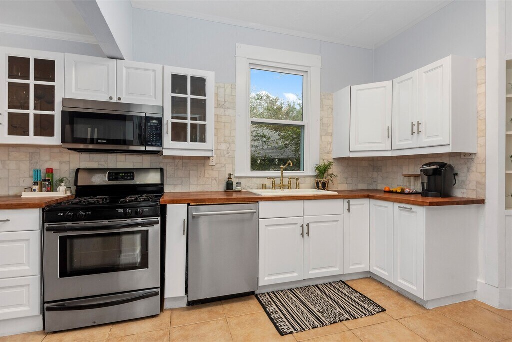 6 Month Lease Available. Stunning 1915 Craftsman style home completely renovated while keeping it's vintage charm! Recent windstorm rated windows throughout! 6 blocks from the Beach & Seawall! Amazing architectural details w/ gorgeous colonades,wood cased windows/doors & built-in reading bench. Open foyer,living & dining areas w/ original hardwood floors! Perfect open plan for entertaining! Spacious primary retreat w/ remodeled ensuite including jet tub. Kitchen features ample storage,butcher block counters & marble backsplash. High ceiling throughout w/ large windows for amazing natural light. Exterior features large southern style front porch,back deck and huge backyard! This home offers ample parking plus off street parking accessible from the front or through the alley in the back. Raised 6 feet off the ground with tons of storage under the home. Centrally located to the seawall,pleasure pier,historic downtown and UTMB! MLS# 77818311