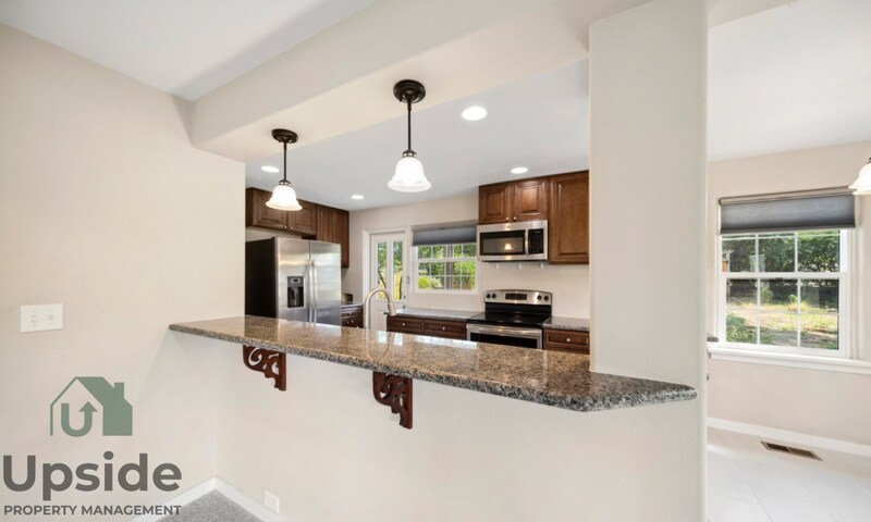 Charming South Hill home with stunning city views available for rent! This contemporary brick residence offers breathtaking sights of Spokane from a welcoming covered front porch complete with a porch swing! Step inside to find a beautifully remodeled 3 bedroom 2 full bathroom home, complete with new paint and carpet, enhancing the open-concept great room perfect for modern living and entertaining. A large open living room flows seamlessly into the bright dining area and kitchen with a breakfast bar. Large windows fill the space with tons of natural light, while the chef's kitchen boasts granite countertops, custom cabinetry, stylish tile flooring and a full suite of stainless steel appliances including a dishwasher and microwave. Two bedrooms on the main floor including the spacious primary bedroom with an ensuite bathroom for added privacy. On the top floor, a large bedroom or family/playroom offers versatility to fit your needs, with loads of light and closet space galore! A single car attached garage offers direct access to the basement and the laundry room with a washer and dryer included. The beautifully landscaped yard with raised garden beds and a pergola covered patio provide a relaxing retreat. Central heat and air conditioning ensure year round comfort in this perfect South Hill gem! Professionally managed by Upside Property Management Applications can be found at Rental Terms Application Fee : $55 per applicant Security Deposit: $2195 Administrative Fee: $200 Rent: $2195 Pet Policy: Pets welcome with pet fees, deposits and pet rent.