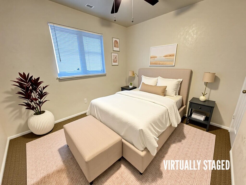 View 360 Virtual Tour: Welcome to this stunning 3 bedroom, 2 bathroom home in Killeen, TX. Step inside and be greeted by a sunroom that floods the space with natural light, creating a warm and inviting atmosphere. The modern design style is showcased throughout, with sleek stainless steel appliances and dark brown cabinets in the kitchen. Cozy up next to the brick fireplace on chilly evenings, creating the perfect ambiance for relaxation. Disclaimer: The furnishings or enhancements shown are AI-generated and intended for inspiration only. They may not reflect the actual scale, condition, or current features of the property.