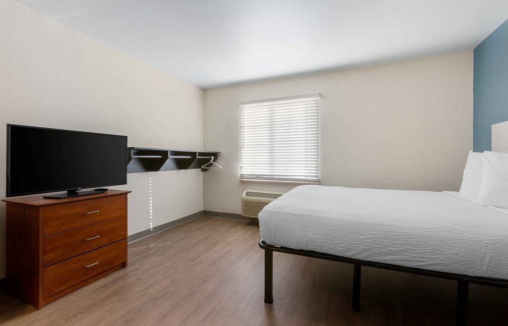 Enjoy a fully furnished studio suite in our hotel at an affordable rate with free wi-fi, free utilities and free premium cable. Each studio suite has a full kitchen with full-size refrigerator, stovetop and microwave, and has a flexible workspace and plenty of storage. All our hotels are pet-friendly and have on-site guest laundry available. Plus, there are no long-term commitments and you can adjust your length of stay to meet your individual needs, subject to applicable property and/or local restrictions. Additional fees may apply. Booking restrictions and taxes apply. Rates and availability are subject to change without notice.