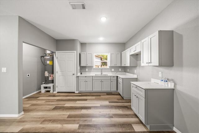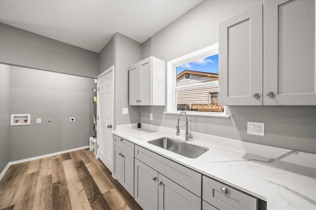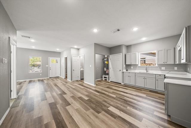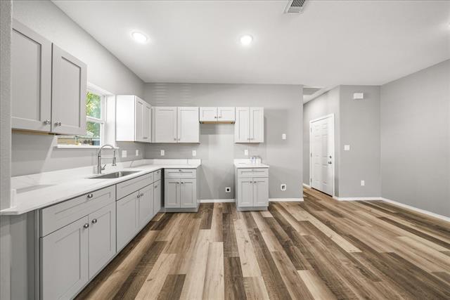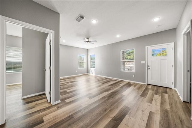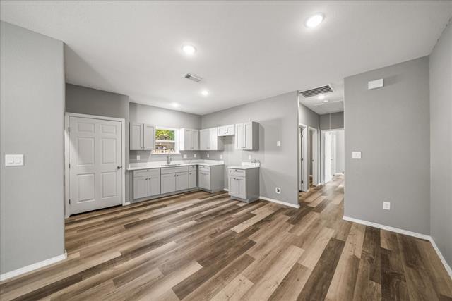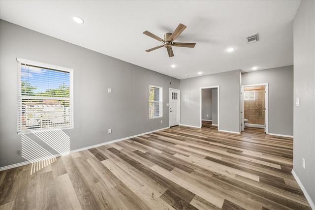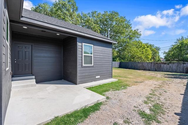 A truly move-in-ready new build with modern charm and exceptional quality! This brand new 4-bedroom, 2-bathroom modern craftsman home, completed in September 2025, offers 1,374 sq ft of open-concept living with a perfect balance of style, efficiency, and comfort. The exterior makes a bold impression with dark siding accented with natural cedar gable and post beams, and a large covered front porch featuring a cedar tongue-and-groove ceiling with recessed lighting. Inside, you’ll find gray-toned walls, gray and brown luxury vinyl plank floors, recessed lighting, modern ceiling fans, and wood faux blinds throughout. The spacious kitchen showcases modern shaker-style gray cabinets with hardware, white quartz countertops with soft gray veining, and an undermount full-basin stainless steel sink with a sleek modern faucet. Both bathrooms feature walk-in showers with floor-to-ceiling tile in a vertical offset pattern for a clean, high-end finish. Designed for incredible energy efficiency, the home boasts fully spray foam insulation in the walls, attic, and crawl space. Enjoy the large backyard and side covered patio with extended concrete and a walkway leading to the outdoor area—perfect for entertaining or relaxing. Ideally located just 5 minutes from the Fort Worth Stockyards, 11 minutes from Downtown Fort Worth, and minutes from I-35W and 820-183, this new build delivers modern craftsmanship, energy-efficient living, and unbeatable convenience.