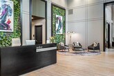Experience luxury high-rise living in this top-floor penthouse residence at The Aster Turtle Creek, ideally located at 3611 Congress Avenue in the heart of Dallas. Offering approximately 1,402 square feet with two bedrooms and two full bathrooms, this modern two-story home features dramatic double-height ceilings, floor-to-ceiling windows, and an open, light-filled layout that captures sweeping skyline and Turtle Creek views. The design combines contemporary architecture with timeless materials, emphasizing livability and style. The main level centers around a chef-inspired kitchen outfitted with Sub-Zero and Wolf appliances, custom blue cabinetry, quartz countertops, and a waterfall island with farmhouse sink, open shelving, and pendant lighting. The open-concept floor plan connects seamlessly to the dining and living spaces with warm wood flooring and abundant natural light. A steel-and-wood staircase leads to the loft-style second floor - perfect for a home office, media room, or living room - overlooking the main living area. The primary suite offers a private retreat with electric shades, generous walk-in closet, and a spa-style bath with dual vanities, soaking tub, and glass-enclosed shower. The secondary bedroom provides flexibility for guests or workspace with an adjacent full bath. A large private balcony extends the living area outdoors for enjoying Turtle Creek and Uptown views. Residents enjoy premier amenities including a rooftop lounge, resort-style pool with waterfall feature, two-story fitness center, yoga deck, golf simulator, concierge service, pet-bathing station, and private gated garage with EV-ready spaces and guest parking. Ideally situated near the Katy Trail, Turtle Creek Park, Uptown, Oak Lawn, and Downtown, this residence offers a refined lifestyle of design, comfort, and convenience. Lease $5,277 per month with promotional incentives available; immediate occupancy.