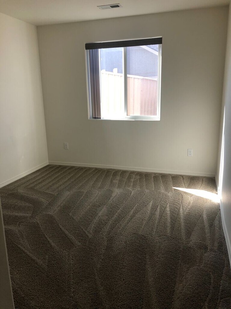 3 bedroom 2 bath located at the end of cul de sac with fully fenced private backyard and extended patio. Ensuite bathroom off primary room includes double walk in closets with double vanity sink with private water closet. Open concept living, kitchen, and dining area. Double car garage w/automatic opener. All utilities and landscaping tenant responsibility. Pets accepted on case by case basis with applicable fees. 12 month Lease