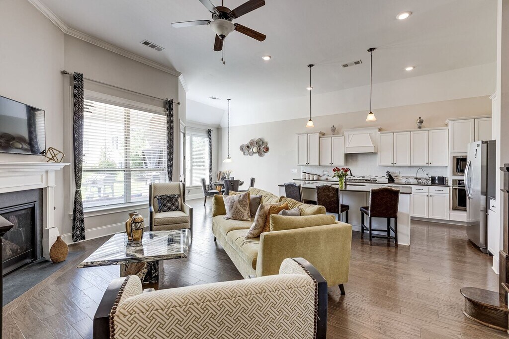 Beautiful unfurnished home in the highly desirable Bridgemore Village community. All bedrooms including master suite are downstairs. Downstairs features include a formal dining room, office with French doors, powder room and oversized two car garage. The second-floor features a tiered theater room that could be used as a 4th bedroom. There is also a bonus room and half bath upstairs. The kitchen features a giant island, double ovens, gas stove, and ample cabinet space. Outside the home features a partially covered patio, tree lined backyard with fence and open green space on one side. Bridgemore Village features two pools, a park, walking trails, and only two blocks from Thompsons Station Elementary and Middle School. Pets must be approved by owner.