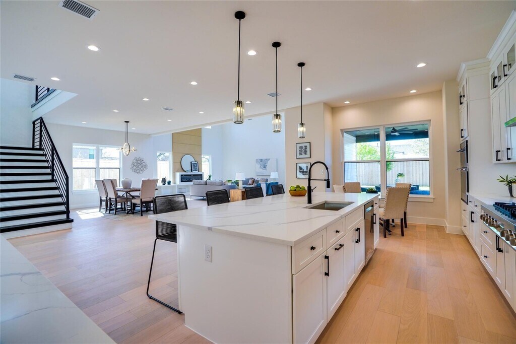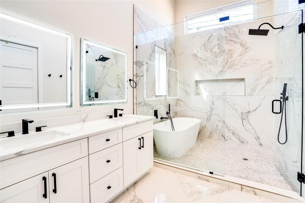 Sleek new contemporary custom home. Open concept with luxury finishes. 4-bedroom, 5-bathroom. A spacious study at the front of the house ensures a quiet work environment with beautiful natural light. Cooking in this luxury chef's kitchen will bring joy while entertaining friends and family. The quartz countertops and high-end appliances reflect the detail put into this home. It also includes a 48-inch cooktop and premium hood. You will love the primary suite with it's beautifully designed custom closet. Each bed has its own bathroom making this extremely roommate friendly! Engineered hardwood flooring throughout. You will notice the energy efficiency in the home with it's spray foam insulation. Located in the desirable Mockingbird Park South neighborhood, close to Dallas Love Field airport and medical district.