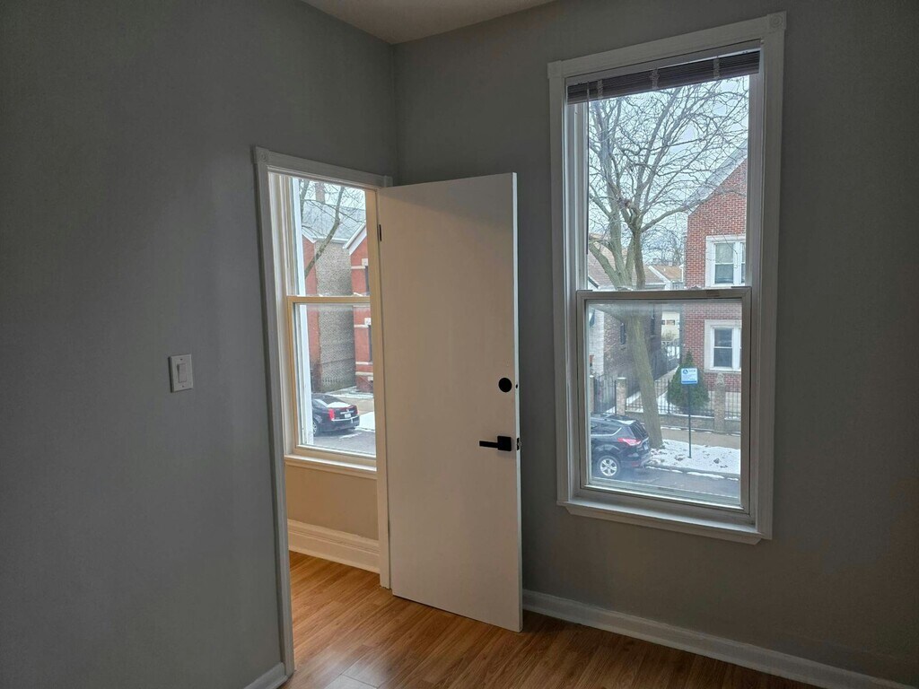Welcome to this freshly renovated McKinley Park 2-bed, 1-bath apartment located at 3611 South Wood Street. Offering a unique blend of vintage charm and modern convenience with tons of natural light, a newly updated bathroom and kitchen, and newly sodded fenced in backyard. Spanning over 700 square feet, this unit is nestled into a friendly neighborhood and close to public transportation and shopping. The kitchen features freshly painted cabinets with trendy new black handles, a new backsplash and a new sink. The updated bathroom includes a newly glazed tub and shower wall with a glass sliding door, new vanity and sink, and vintage doorknobs. Both bedrooms are freshly painted with lots of natural light. The bedrooms feature a larger master bedroom and a smaller jr. bedroom/den, perfect for a working space or bedroom. Free street parking easily available ***available 2/1 and a 16-month lease ending 5/1/27 preferred- terms negotiable***