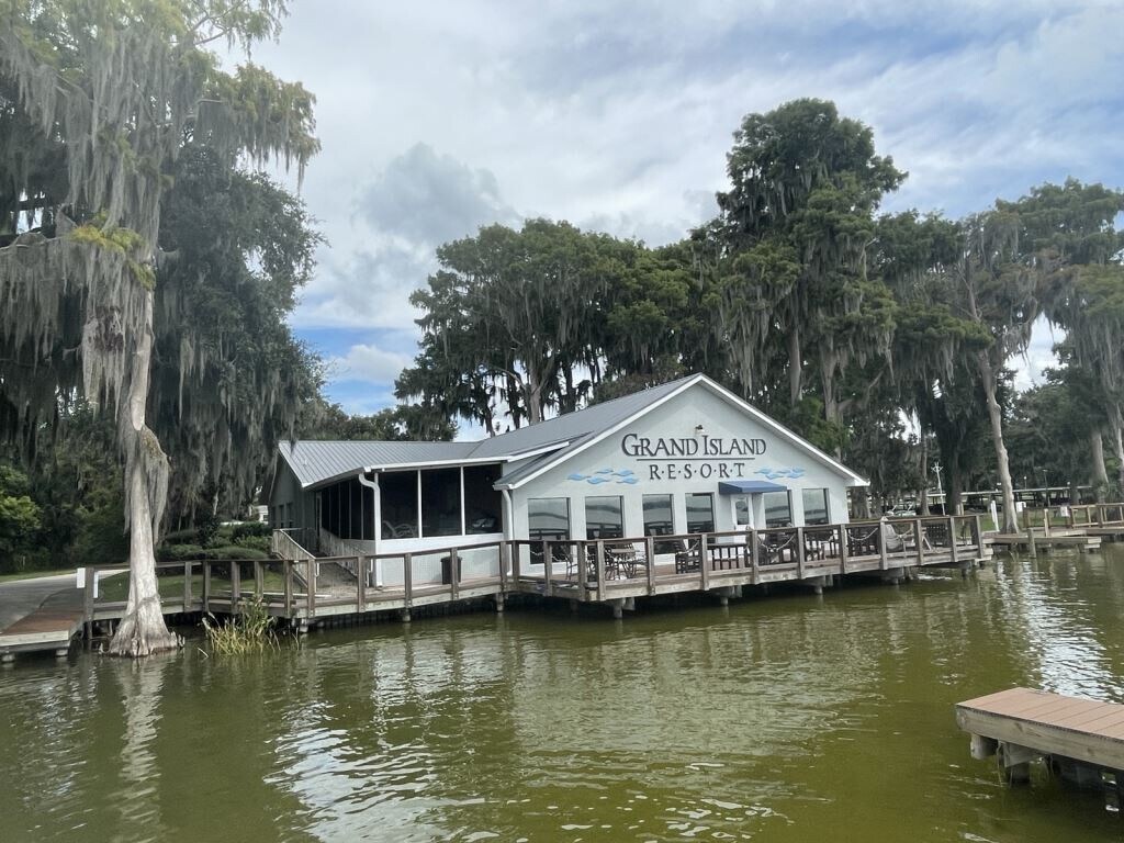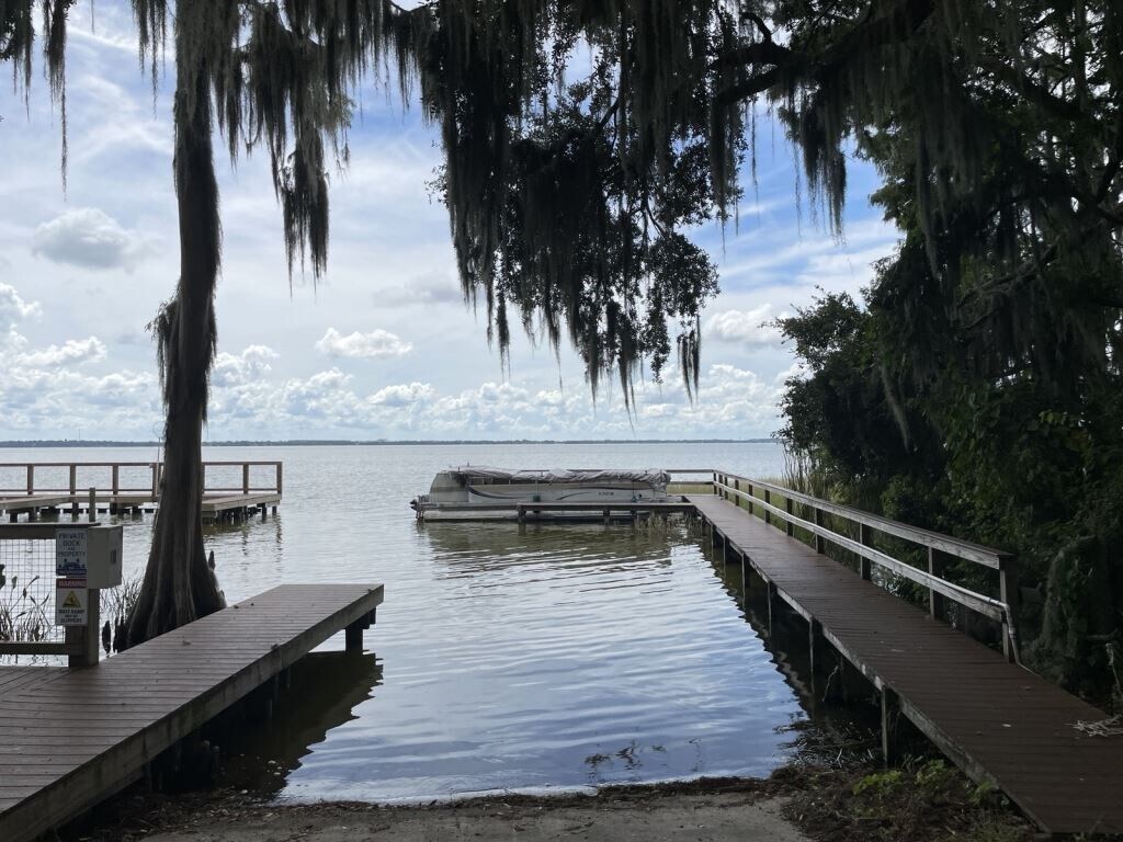 Welcome to Grand Island Resort a 55+ age-qualified active lakefront community, where you can find yourself in your dream home. Tentatively available 11/15/2025. This home is currently being renovated and cannot be shown. Nothing beats the feeling of coming home to a place you love. The front porch has ample space for outdoor seating. Three large bedrooms with large closet space in each room. You'll be making memories and pancakes in the spacious kitchen, featuring a 42' high breakfast bar that backs up to the great room. The master suite features luxurious amenities such as the walk-in closet and en suite bathroom with dual-vanity. An external shed also provides you with additional space for storing some of those extra items. Located just steps away from the community pool. Stop by to explore all that this home has to offer and let us welcome you home. Enjoy access to a range of amenities such as the crystal clear swimming pool, private boat launch, game room, shuffleboard courts, lakeside clubhouse, fishing pier, storage area, laundry facility, and regularly scheduled activities. Located on Lake Eustis which is part of the Harris Chain of Lakes which provides miles of waterways to enjoy fishing, boating, and dining on the water. We are approximately 1 to 1 1/2 hours to the Gulf Coast or Atlantic Ocean. We are approximately 1 hour from Ocala or Orlando. We are about 20 minutes from Downtown Mount Dora or Tavares, or Leesburg. We are within an hour from Orlando airport, within 3 miles from grocery stores and pharmacies, within 4 miles from Advent Health Waterman Hospital and 10 miles from UF Health Leesburg Hospital and a wide array of specialists in the area. You will have everything you need just minutes away, whether it's relaxation or recreation.