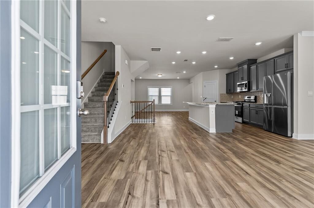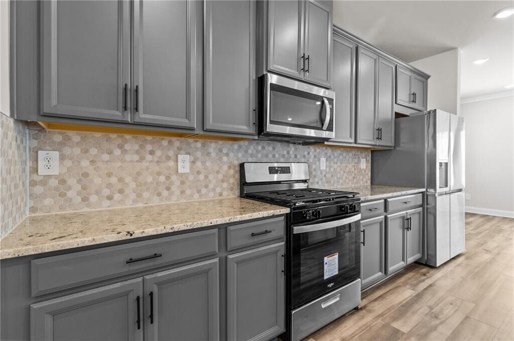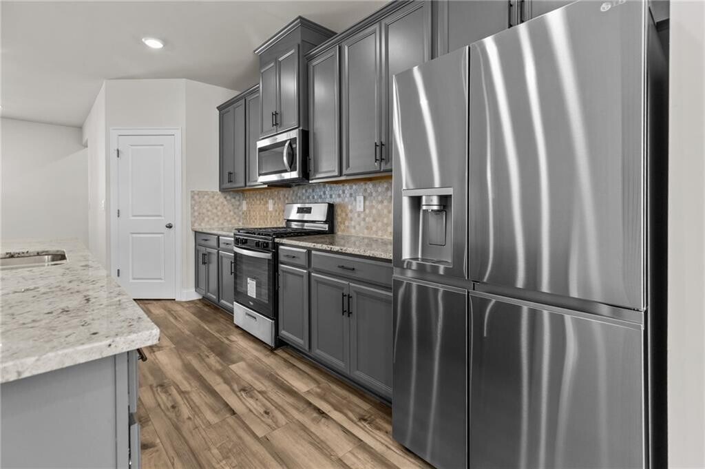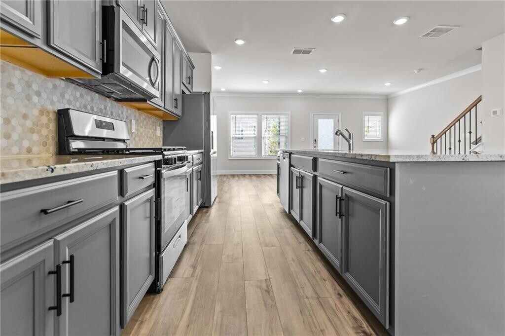 Barely Lived in 3-Story END Unit Townhome in Gated "Sweetwater Green" swim,clubhouse,playground & dog park community! Popular Meritage Homes "Jordan" Plan. SS appliances include gas cooking,French Door Fridge & washer/dyer. Terrace level features oversized garage w/extra room for storage,oversized luxury vinyl hallway has room for home office,4th bedroom and private tile bath. 9' ceilings on terrace & main level. Front porch welcomes you to the luxury vinyl main level featuring spacious living and dining areas viewing the island kitchen w/painted cabinets and walk-in pantry. Extensive recessed lighting throughout. Upgraded trim package includes upgraded baseboards,casings and cove molding. 2" blinds throughout. Primary suite features HIS & HER closets and HUGE tile super shower w/glass doors. All full baths feature tile floors,tile bath surrounds and quartz counter tops w/square sinks. Easy access to I-85 and 316. MLS ID 7717700