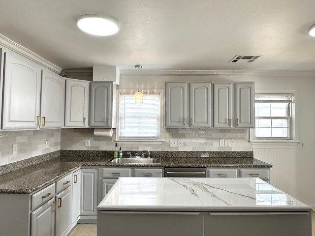 This home could not be any cuter. The living room features beautiful hardwoods, vaulted ceiling and opens up to a newly remodeled kitchen. The kitchen is sleek with stainless appliances, subway tile and a versatile island. Nice sized bedrooms, an updated cottage bathroom with lots of storage. The back yard is perfect for entertaining. French doors off of the kitchen open up onto a large deck. New paint, lighting and fixtures make this home so charming.
