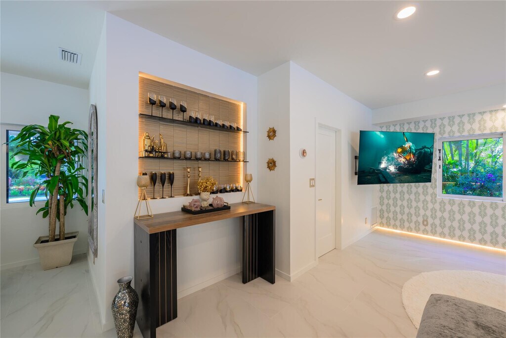 This exceptional,fully renovated residence offers a rare blend of elegance,privacy,and resort-style amenities. Featuring four spacious bedrooms,four bathrooms,and a versatile den/office,the home is designed for both comfort and functionality. Enjoy open-concept living areas filled with natural light and seamless indoor-outdoor flow. Recent upgrades include all-new finishes and furnishingsmove-in ready for its first occupant. Outside,a lush paradise awaitsimmerse yourself in the sparkling pool,sip cocktails at the tiki bar,or entertain beneath swaying palms in the outdoor kitchen oasis. A unique opportunity to live in a one-of-a-kind property that combines comfort and lifestyle. MLS ID F10532990