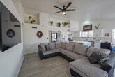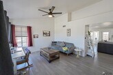 Home for Rent in Rancho Sereno! Now available for rent in the Rancho Sereno subdivision! This 3-bedroom, 2-bathroom home includes a den and offers 1,785 sq ft of living space. Features include two living rooms, a fireplace in the main living area, bay window in the dining room, and upgraded modern cabinets with newer appliances—including a dishwasher. The primary bedroom includes a sliding glass door to the backyard, walk-in shower, double vanity, and a spacious walk-in closet. Ceiling fans are installed in all bedrooms for added comfort. Outside, you'll find easy-care front landscaping, a fully fenced yard with a single gate, and backyard reseeding scheduled for green grass. A 2-car garage adds convenience. Contact the listing agent today to schedule your private tour!